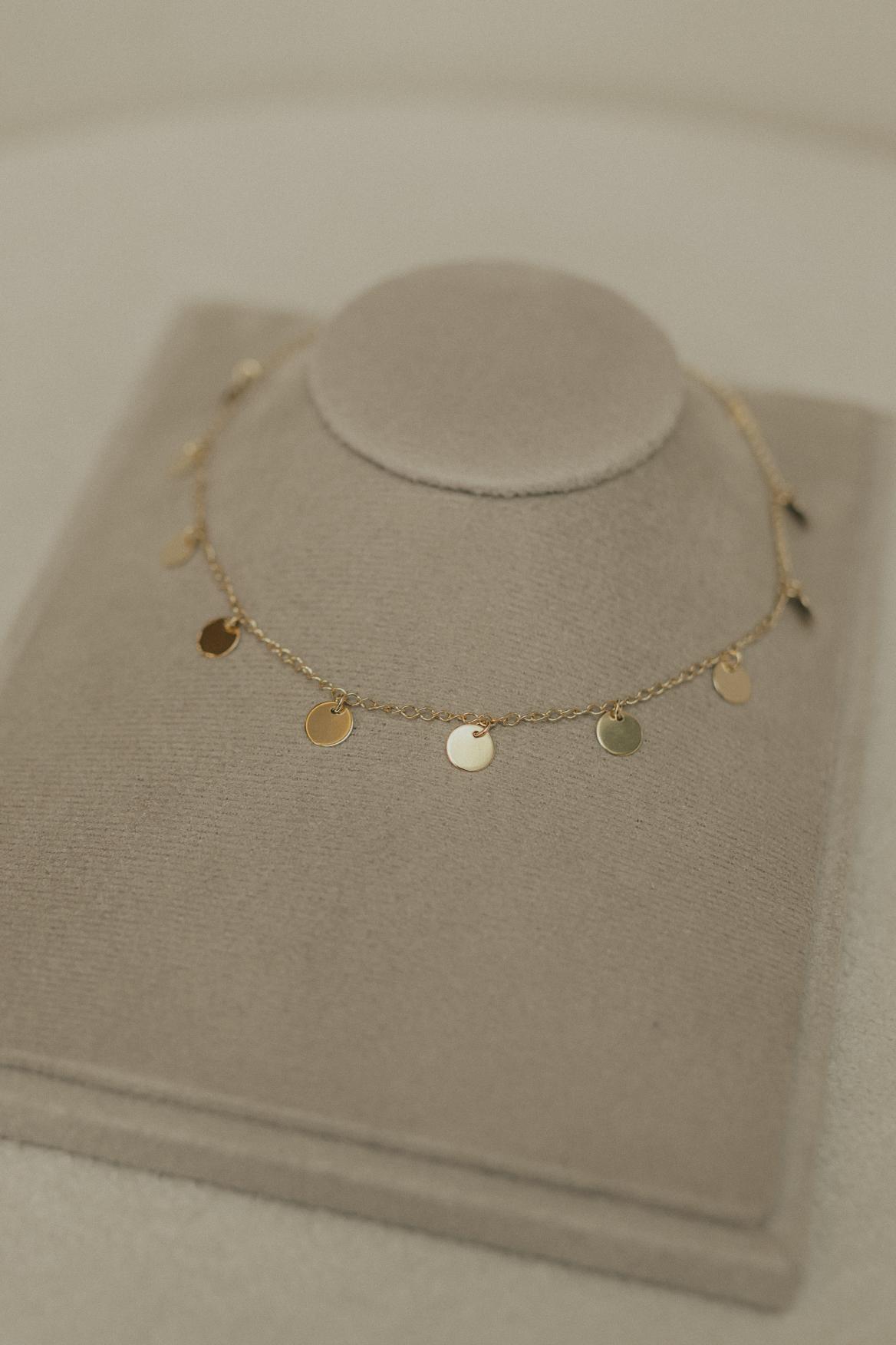 Choker com medalhinhas em toda sua extensão no banho de ouro 18k.