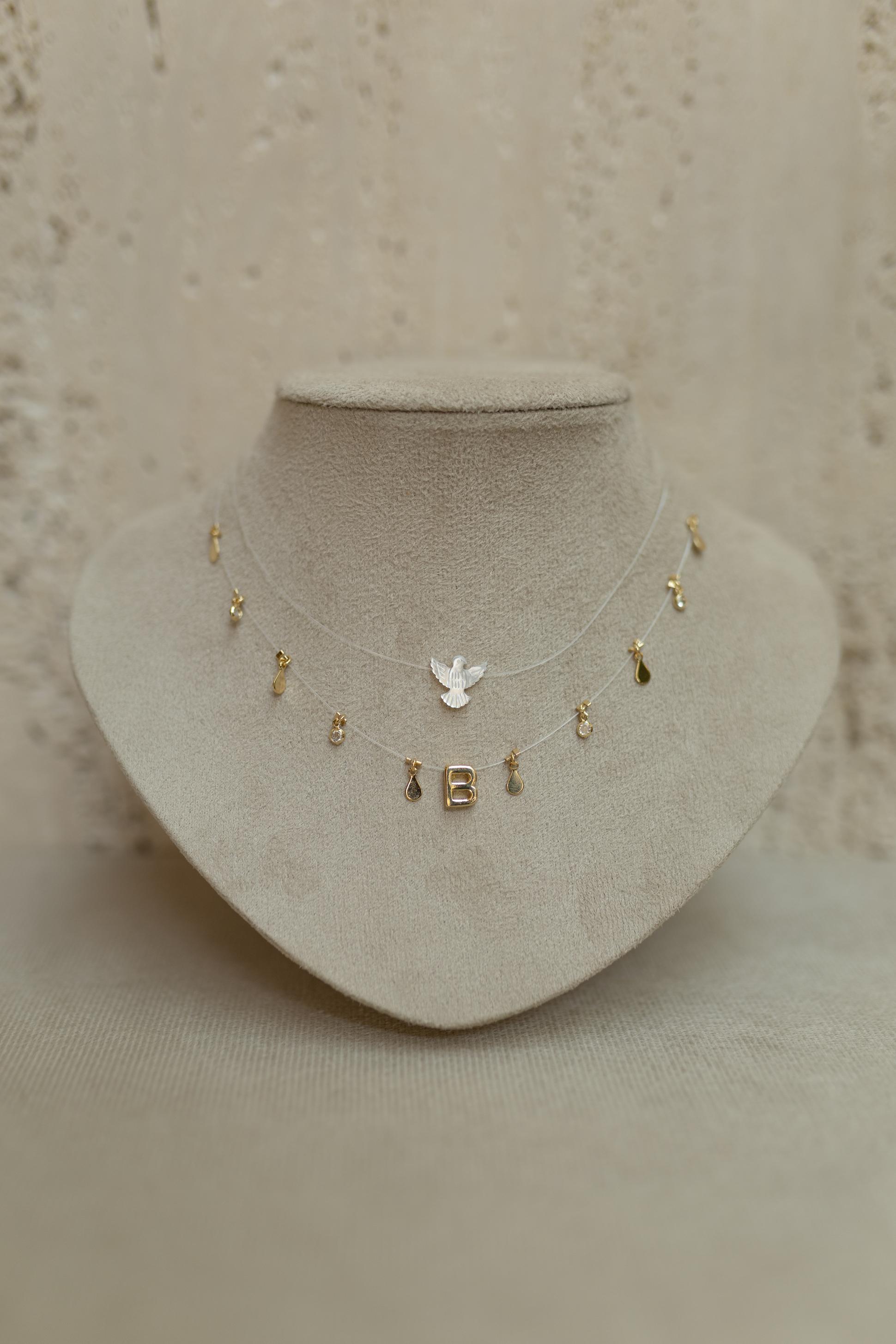 A Choker com inicial é produzida de forma artesanal com um fio de nylon super resistente onde adicionamos os pingentes de zircônias na cor cristal e medalhinhas no banho de ouro 18k.