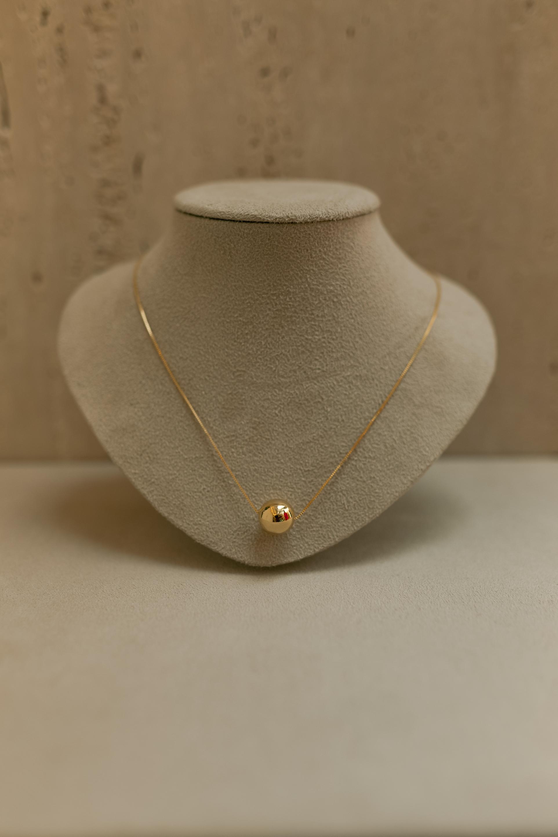 Colar gargantilha de fio com uma bola no banho de ouro 18k.
