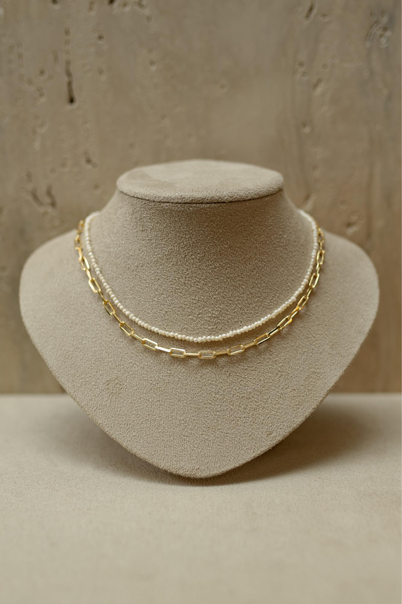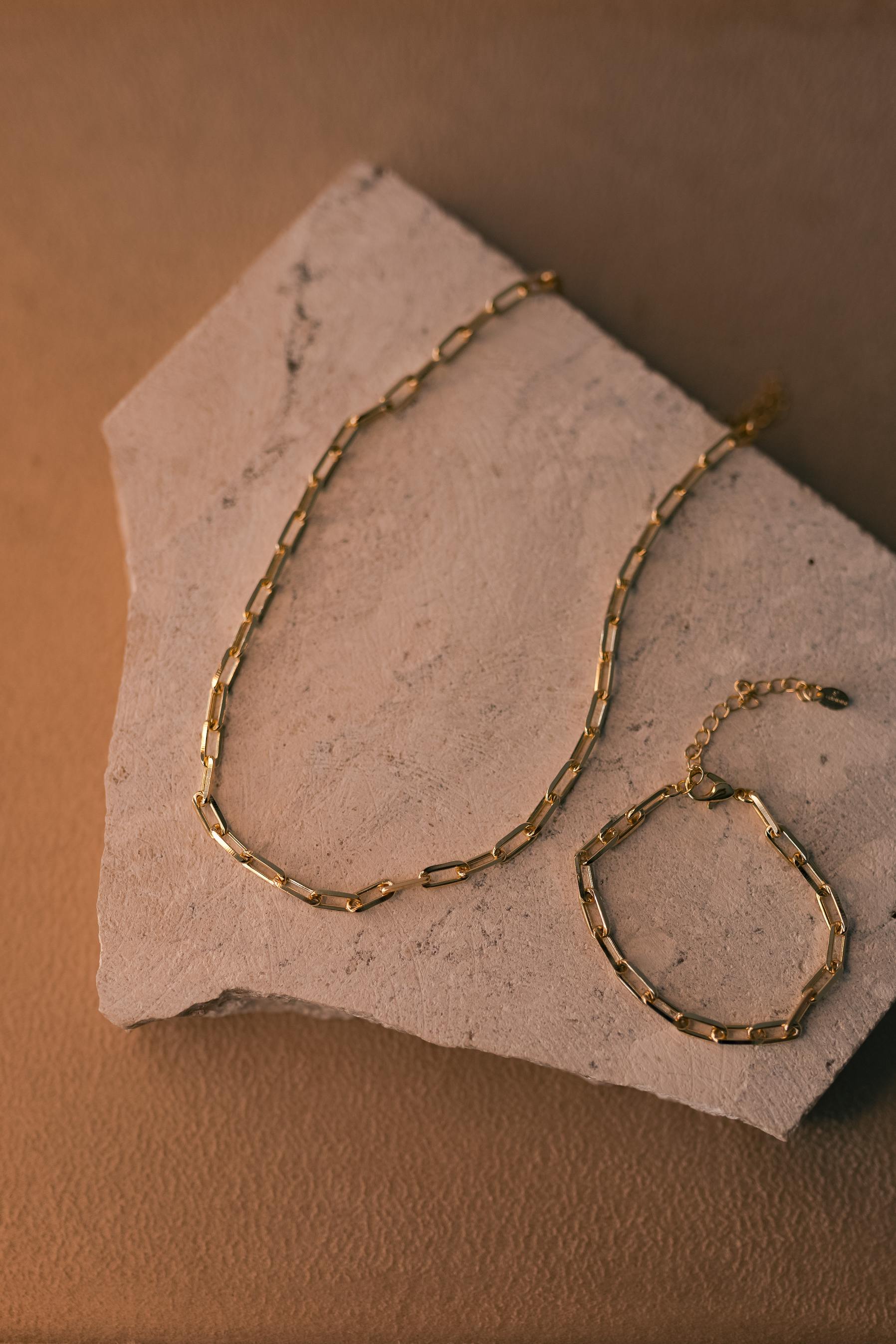 Colar confeccionado em elos retangulares no banho de ouro 18k.