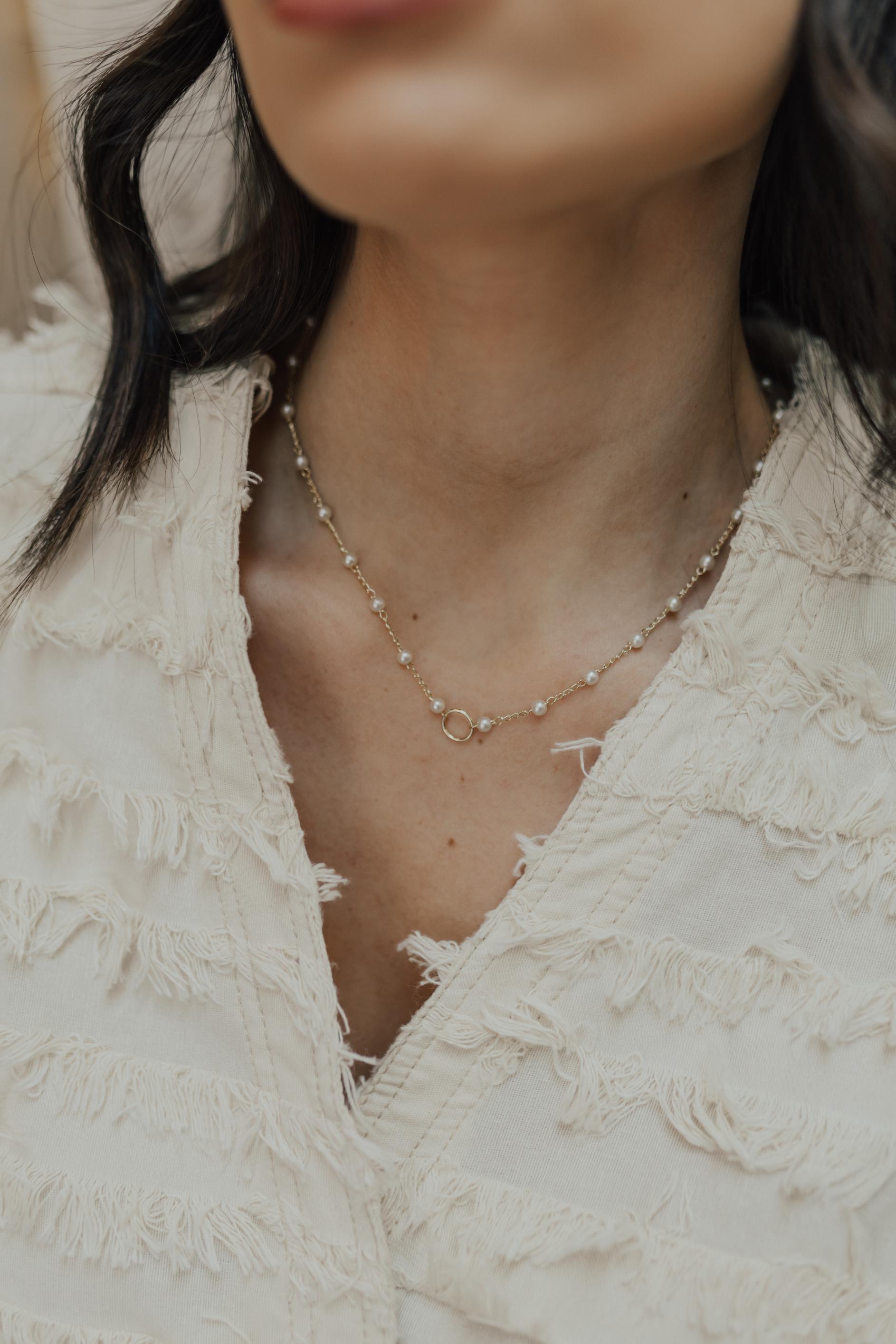 Colar com pérolas com elo no centro perfeito para encaixar pingentes no banho de ouro 18k.
