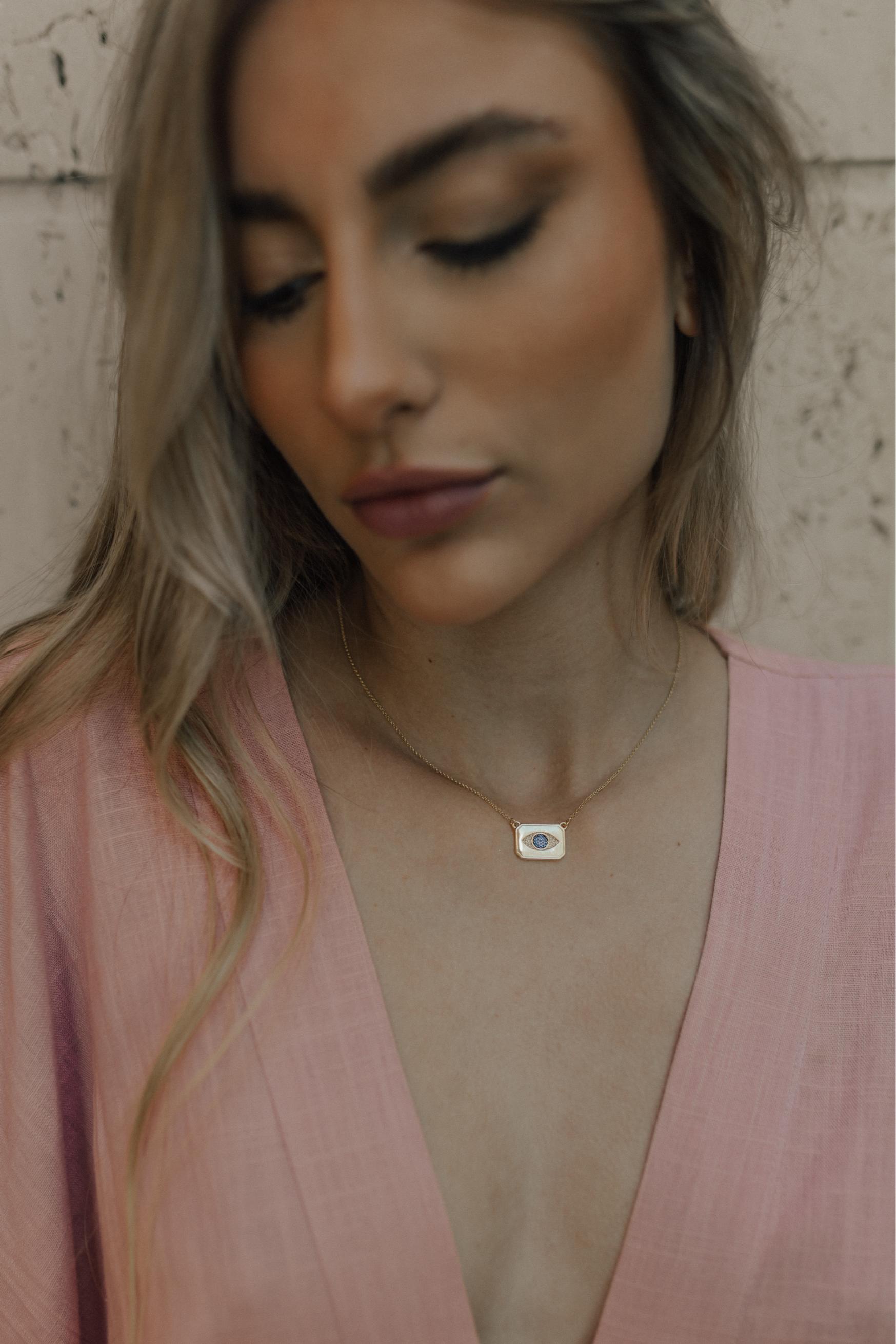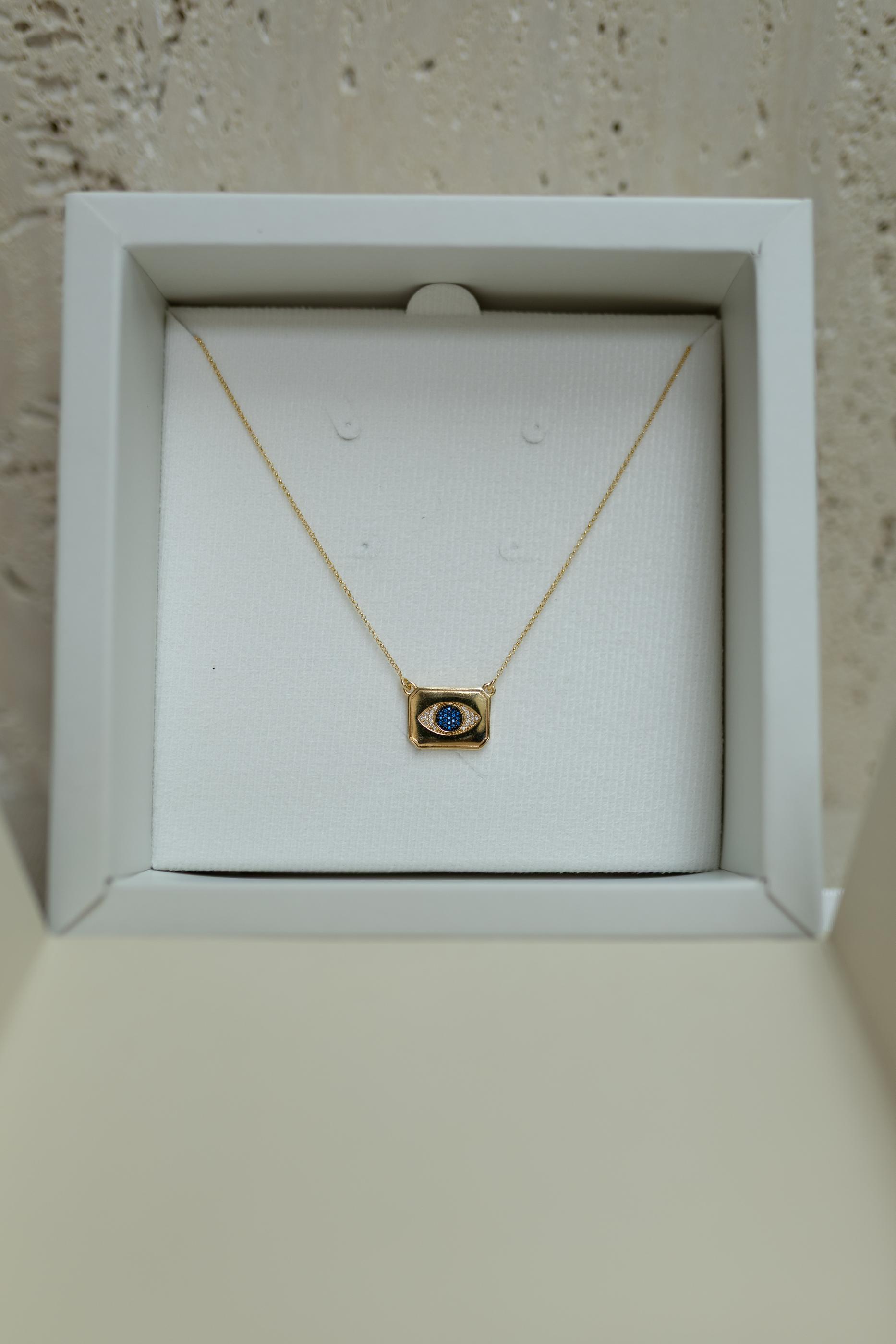 Colar com design vintage com detalhe de olho grego no banho de ouro 18k.