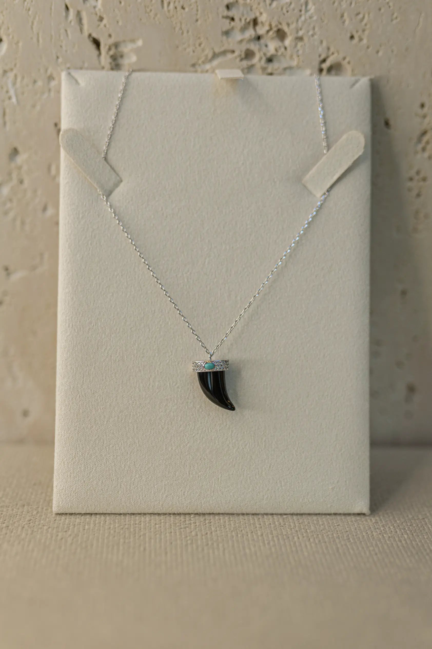 Colar com pingente de esmaltação italiana na cor preta no banho de ródio branco.
