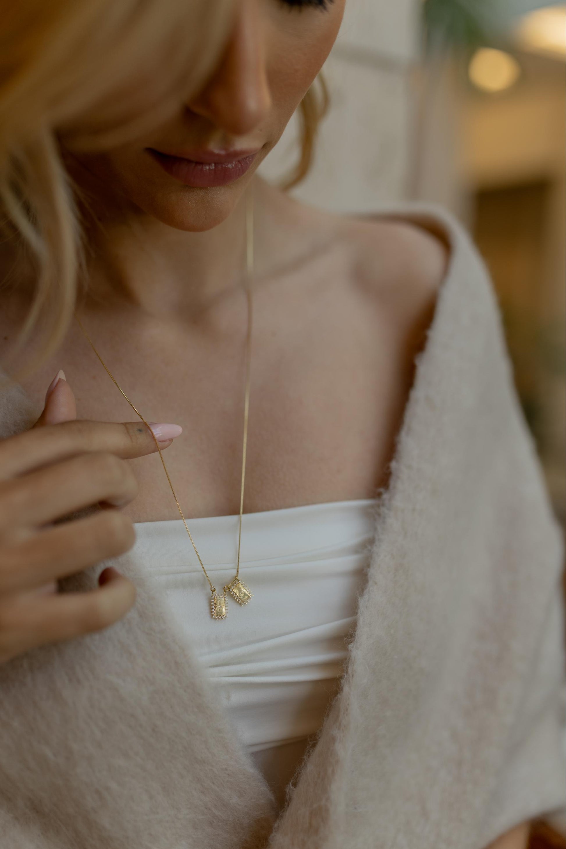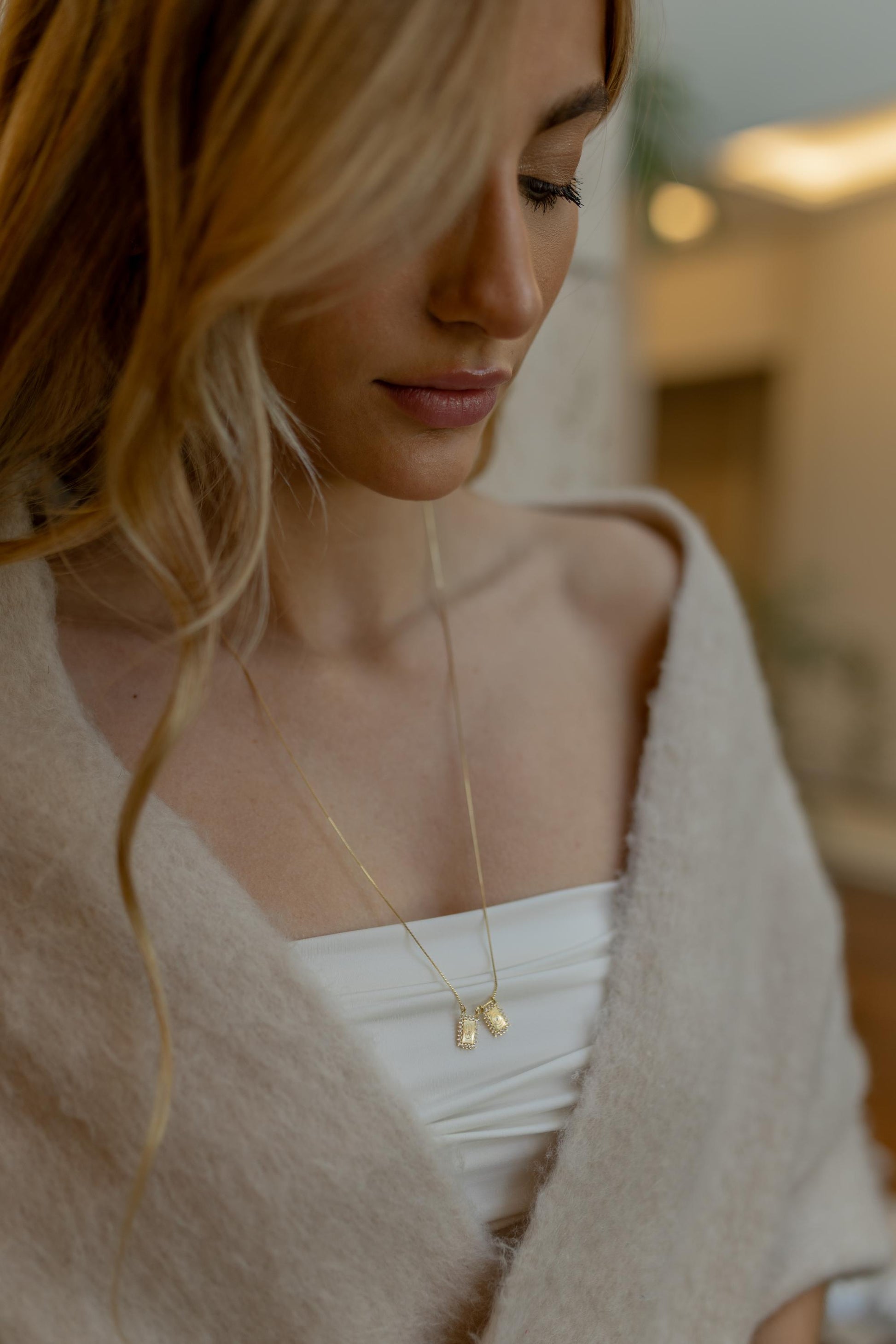 Colar escapulário de mão de hamsá articulável, você pode deixar os 2 pingentes juntos ou separados no banho de ouro 18k.