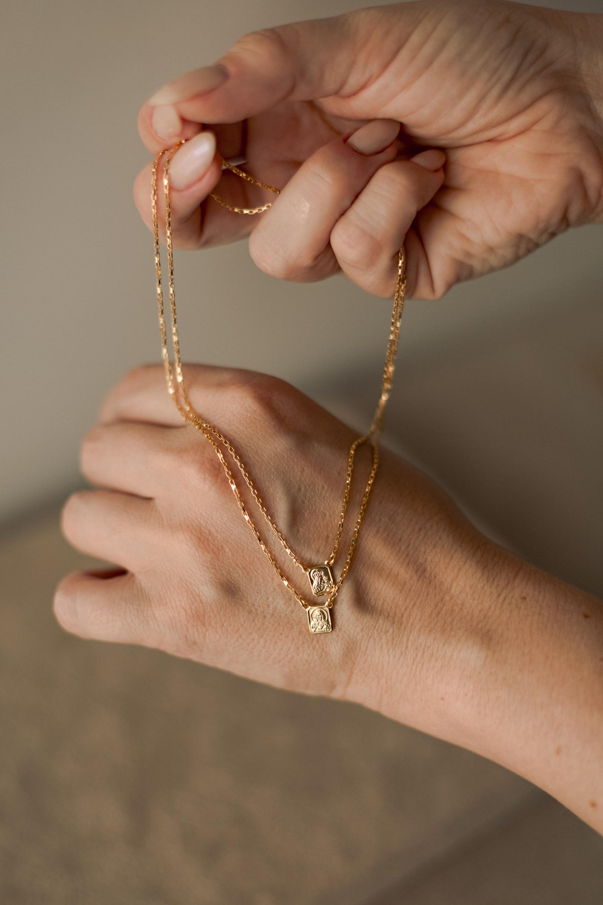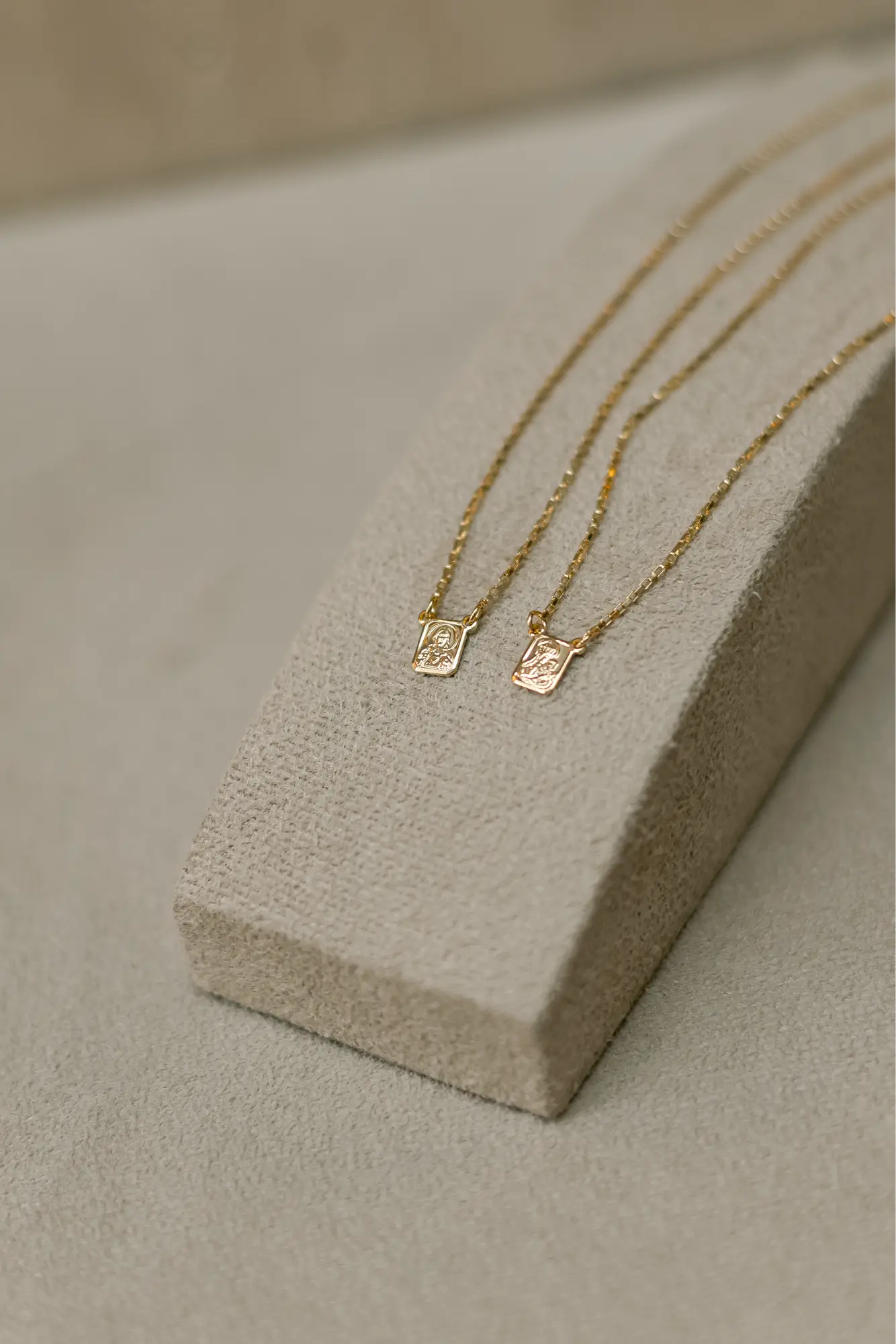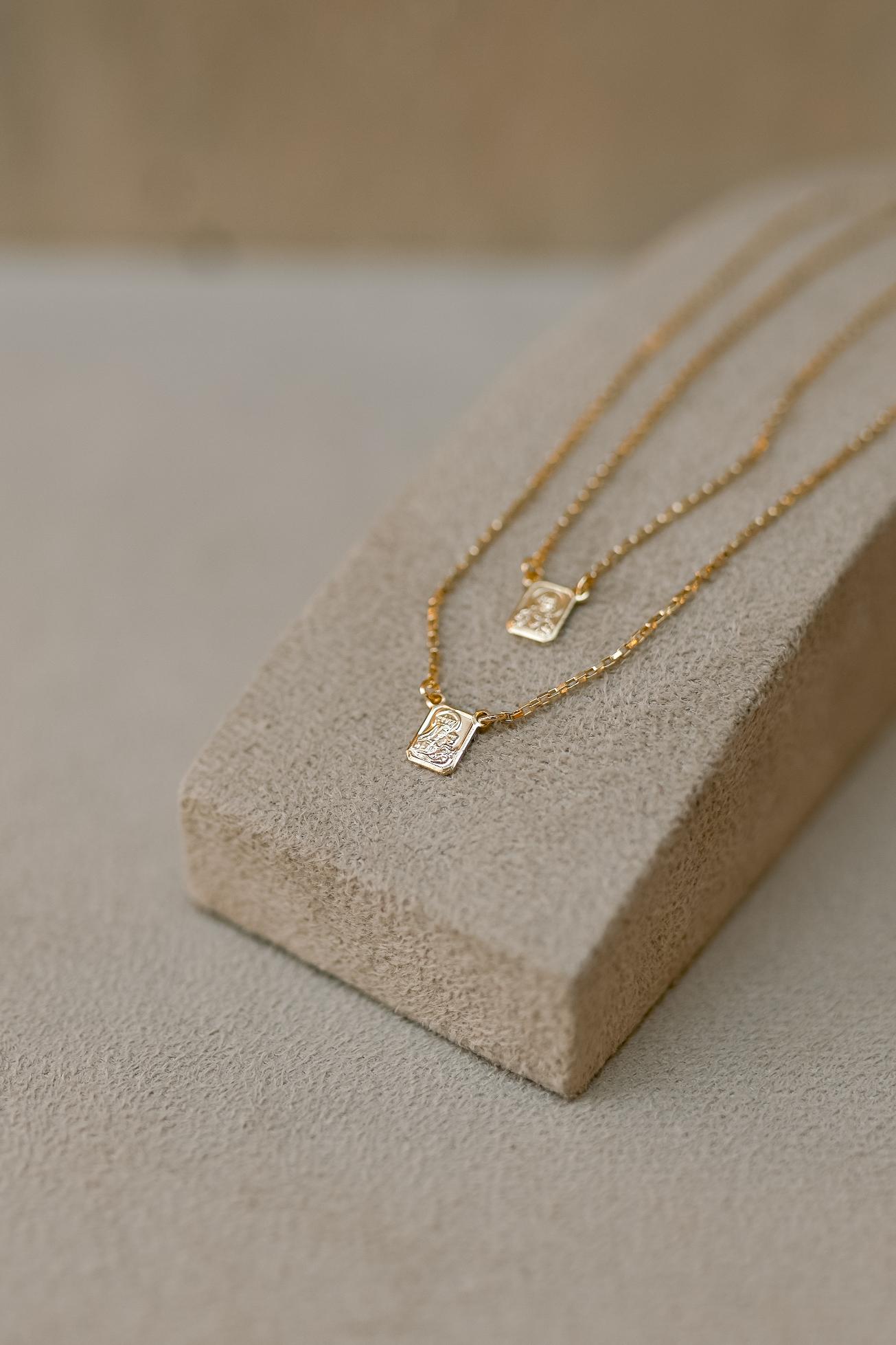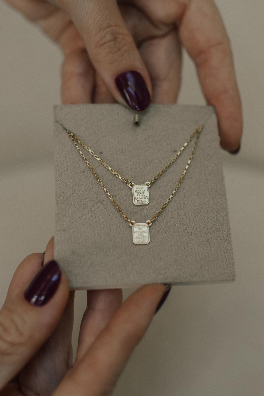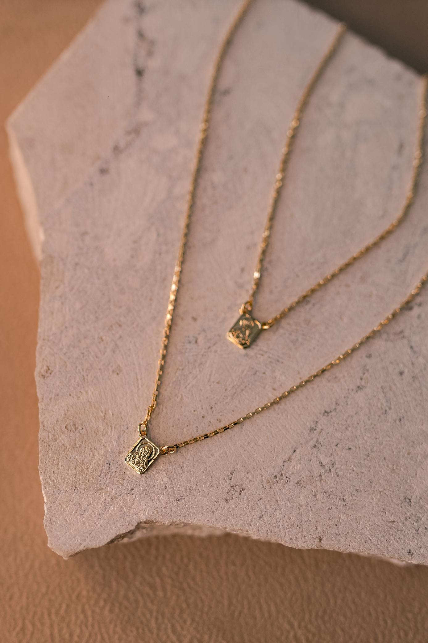 Colar escapulário tradicional do Sagrado Coração de Jesus e Nossa Senhora do Carmo, possui corrente de elos, pingente fixo de mini medalhas no banho de ouro 18k.