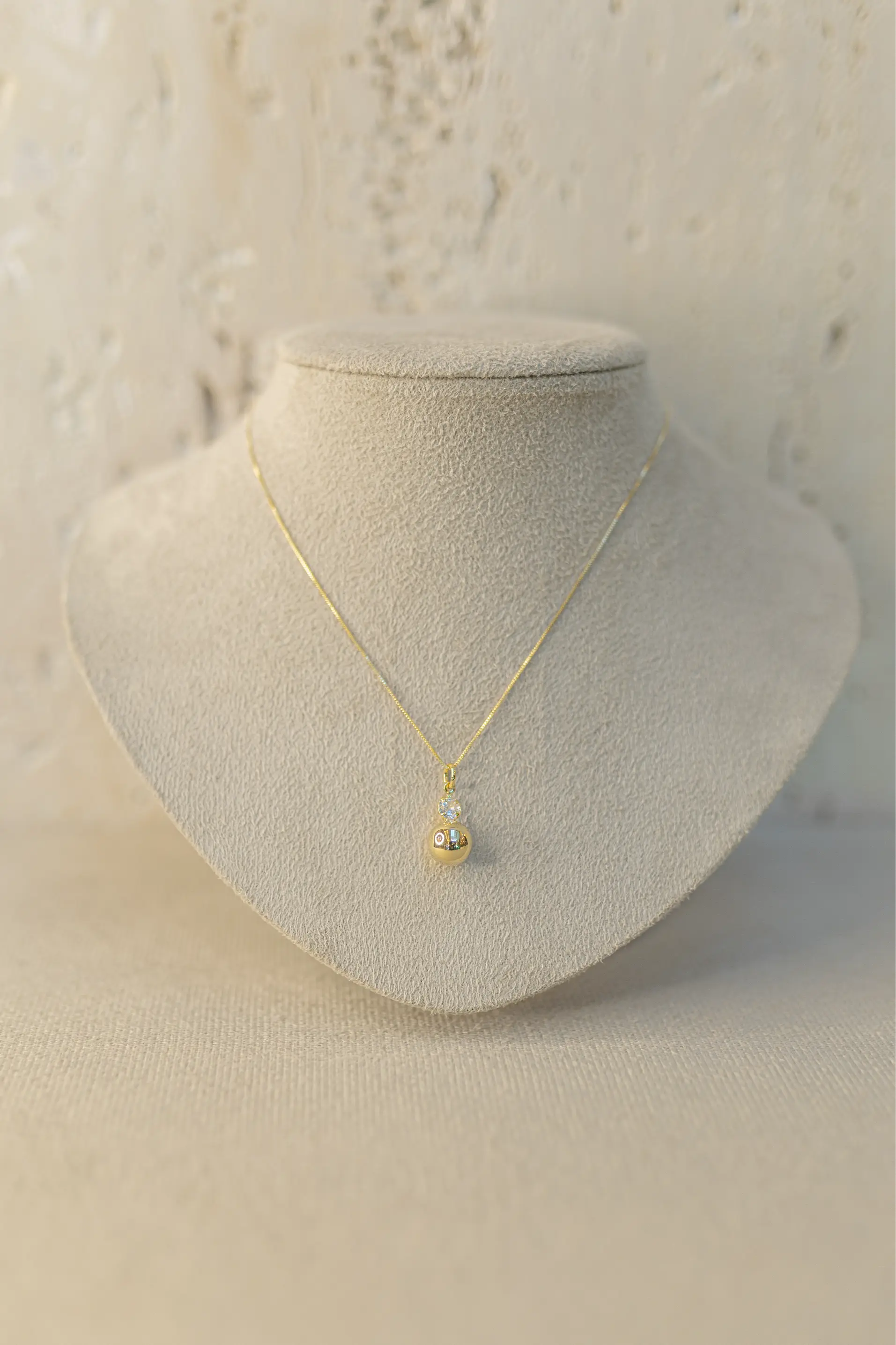 Colar com pingente de bola com zircônia na cor cristal no banho de Dourado 18k.