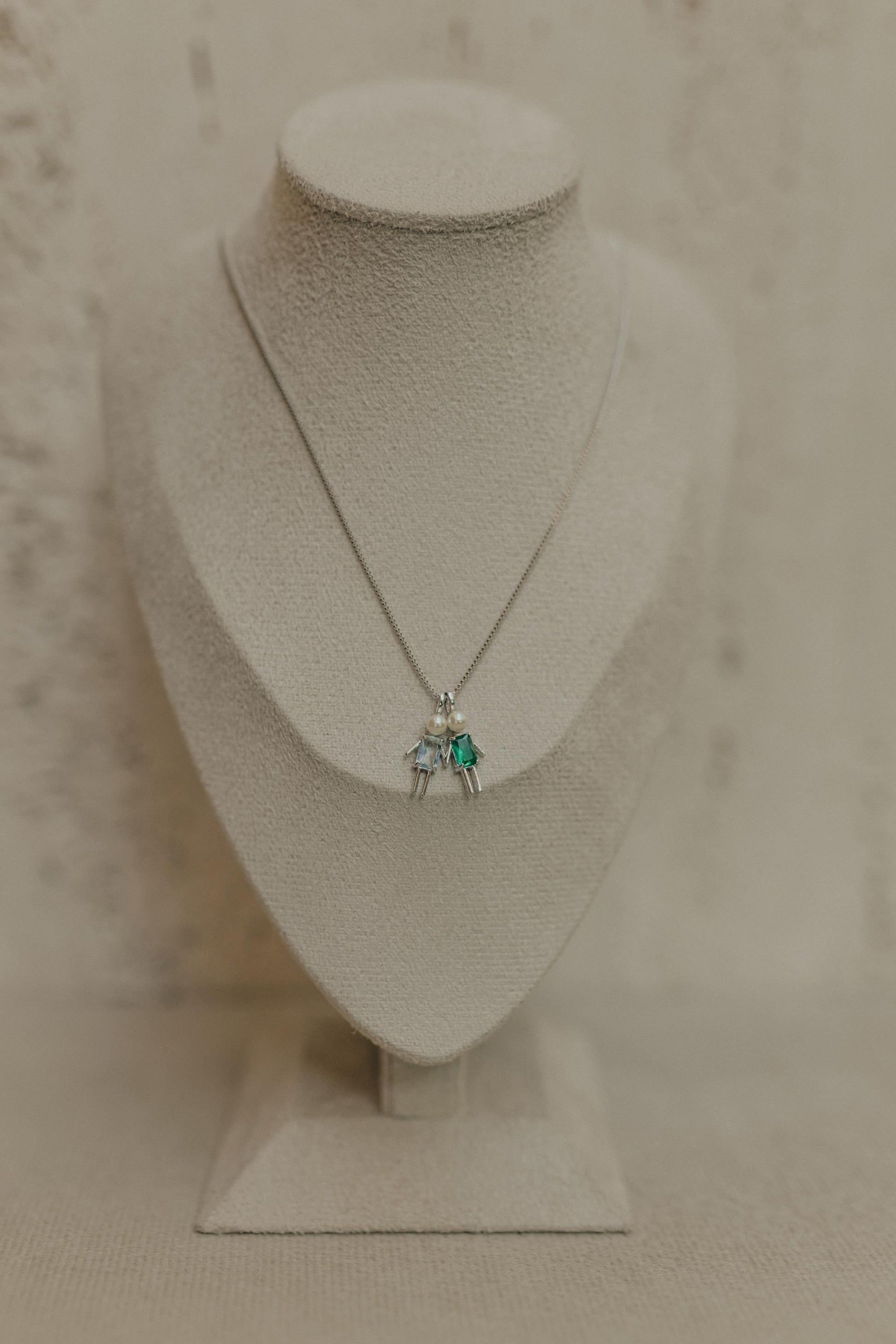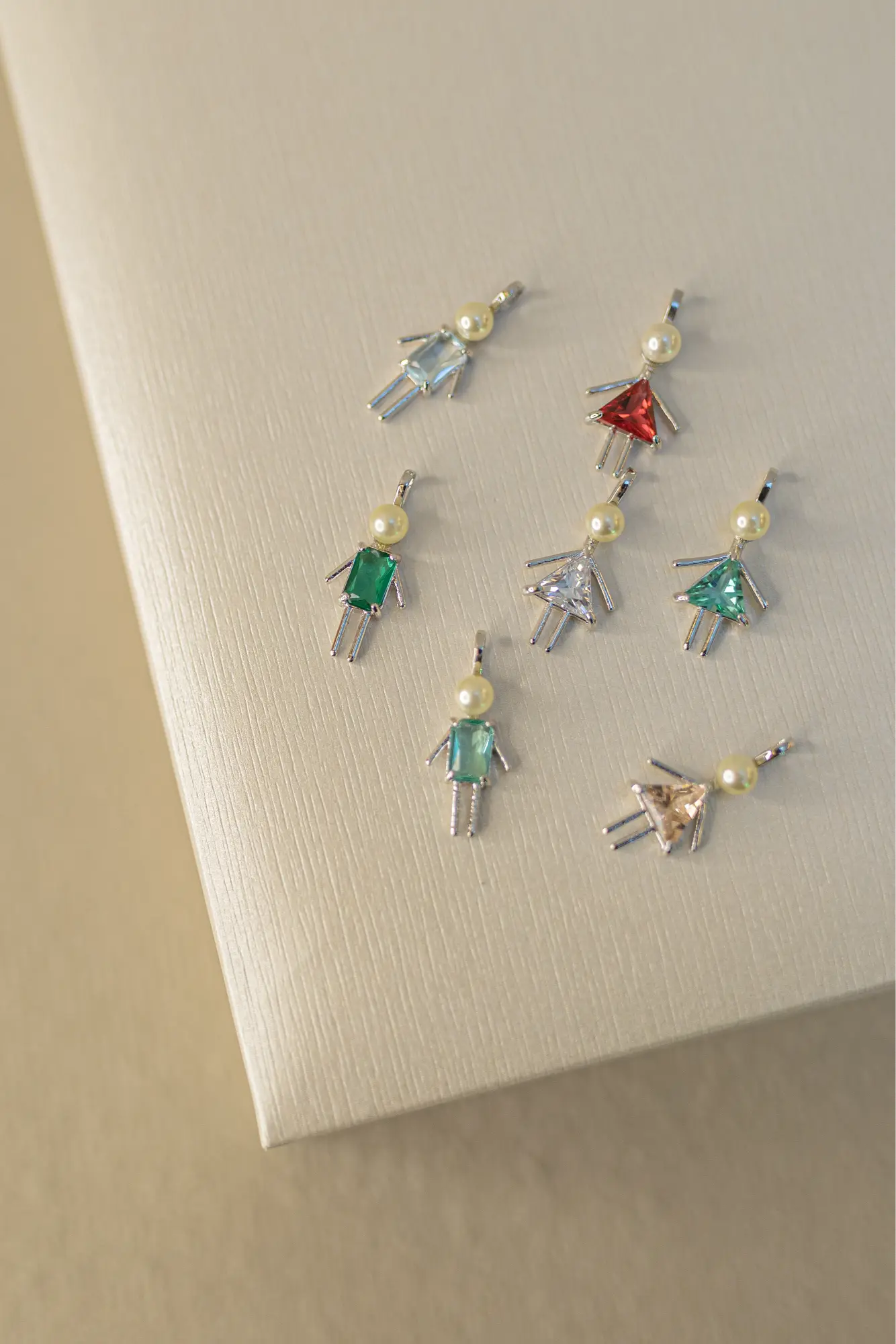 Colar com pingente de menino ou menina com zircônias e pérola.