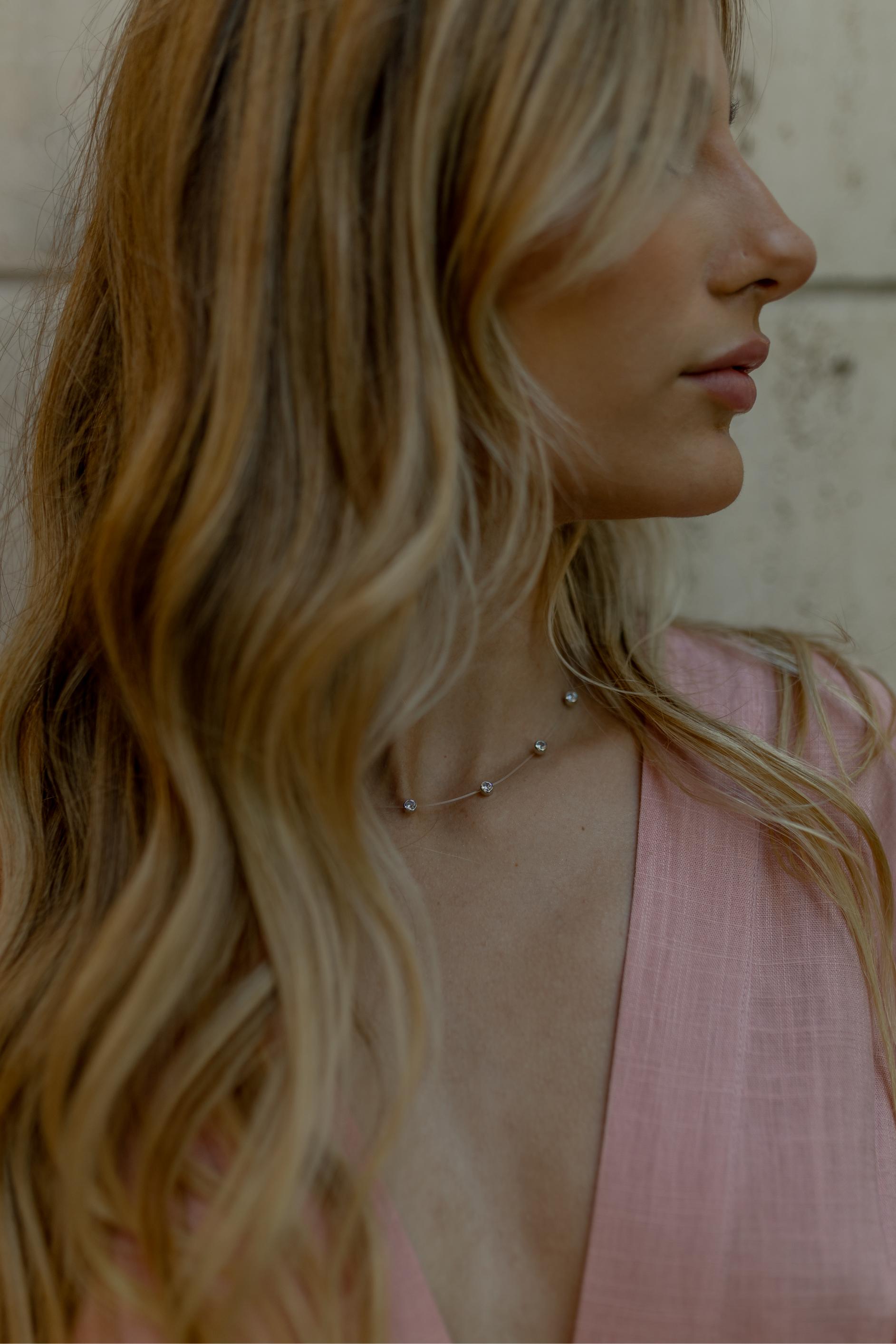 Colar com fio de nylon com pontos de luz no banho de ródio branco! A tendência do momento: fio de nylon!!