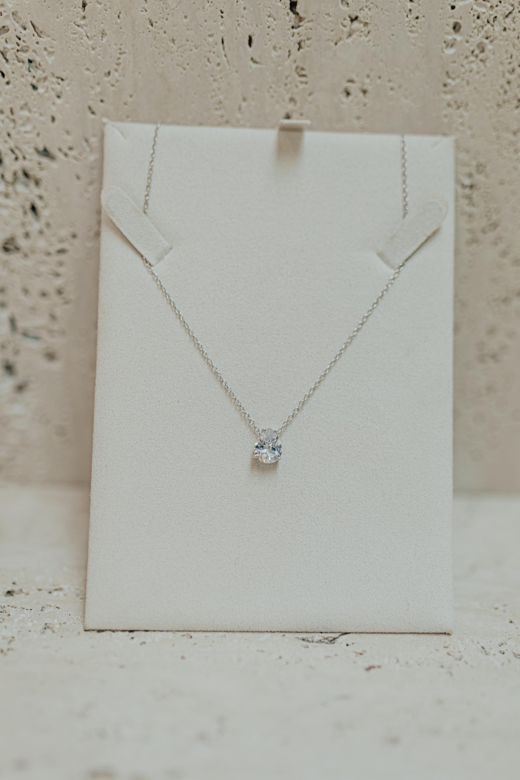 Colar com pingente no formato de gota na prata 925 e banho de ródio branco.