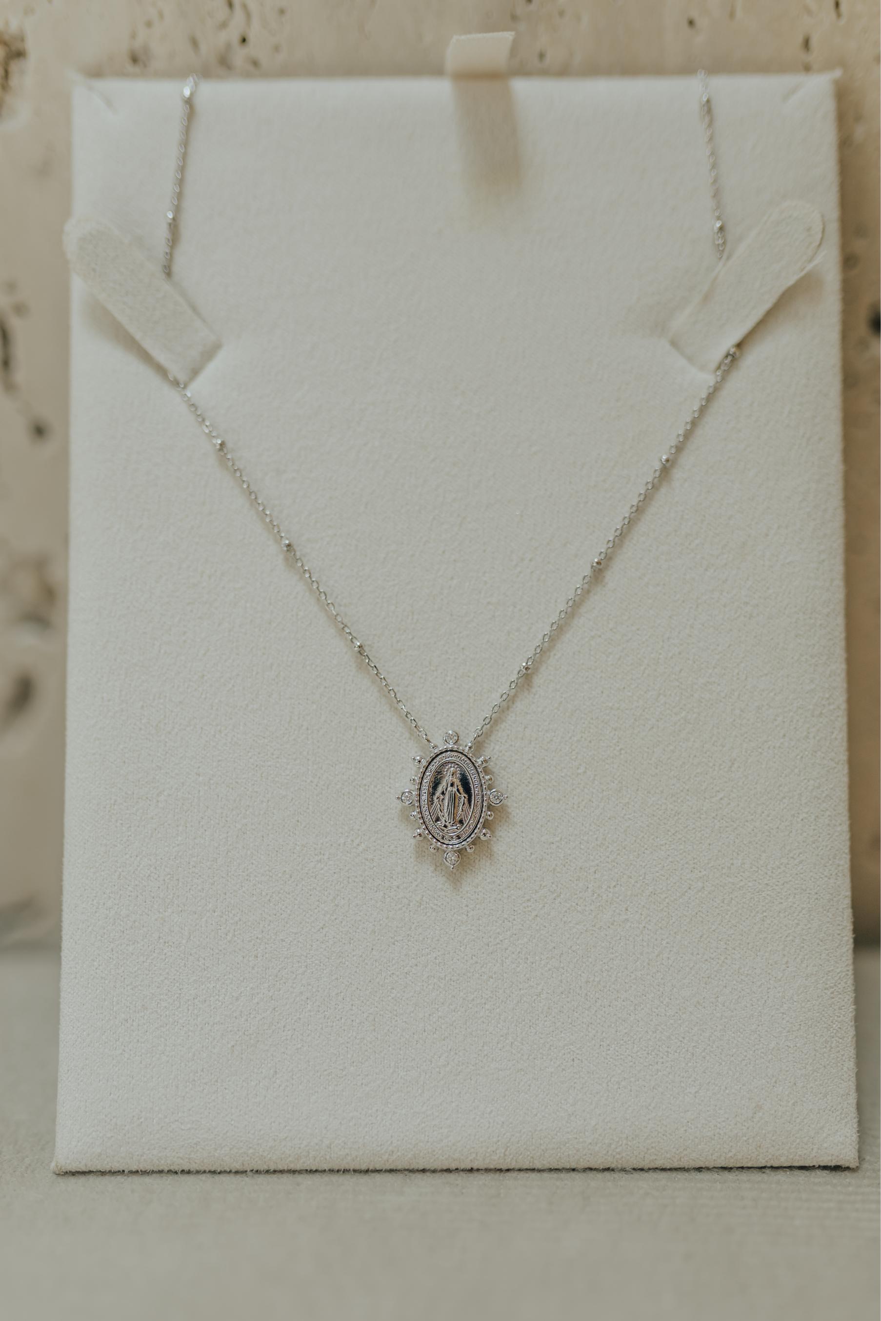 Colar Nossa Senhora das Graças e Medalha Milagrosa confete com Moissanites na prata 925 e banho de ródio branco.