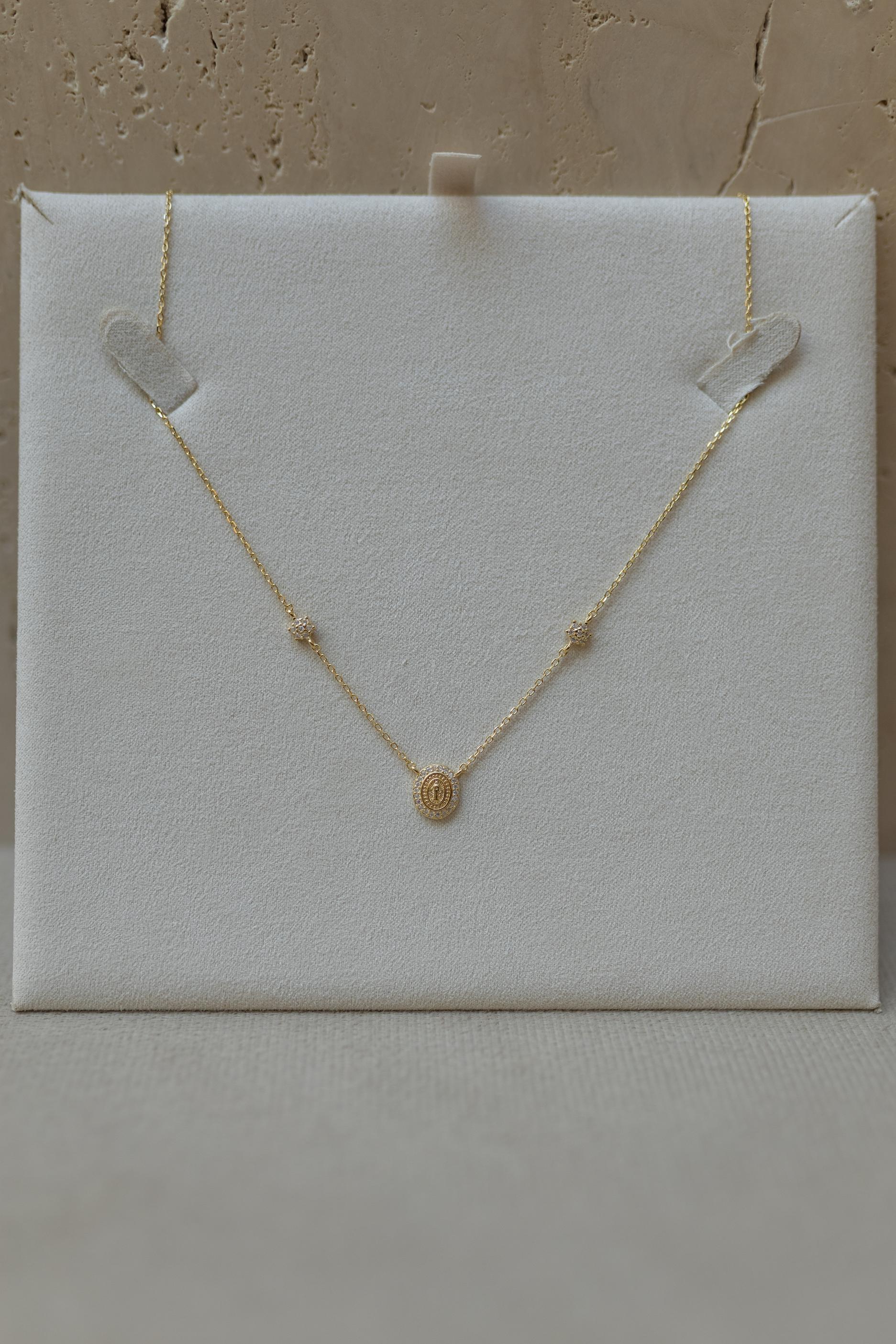 Colar Mini Nossa Senhora das Graças Flores Moissanite Prata 925 Dourado