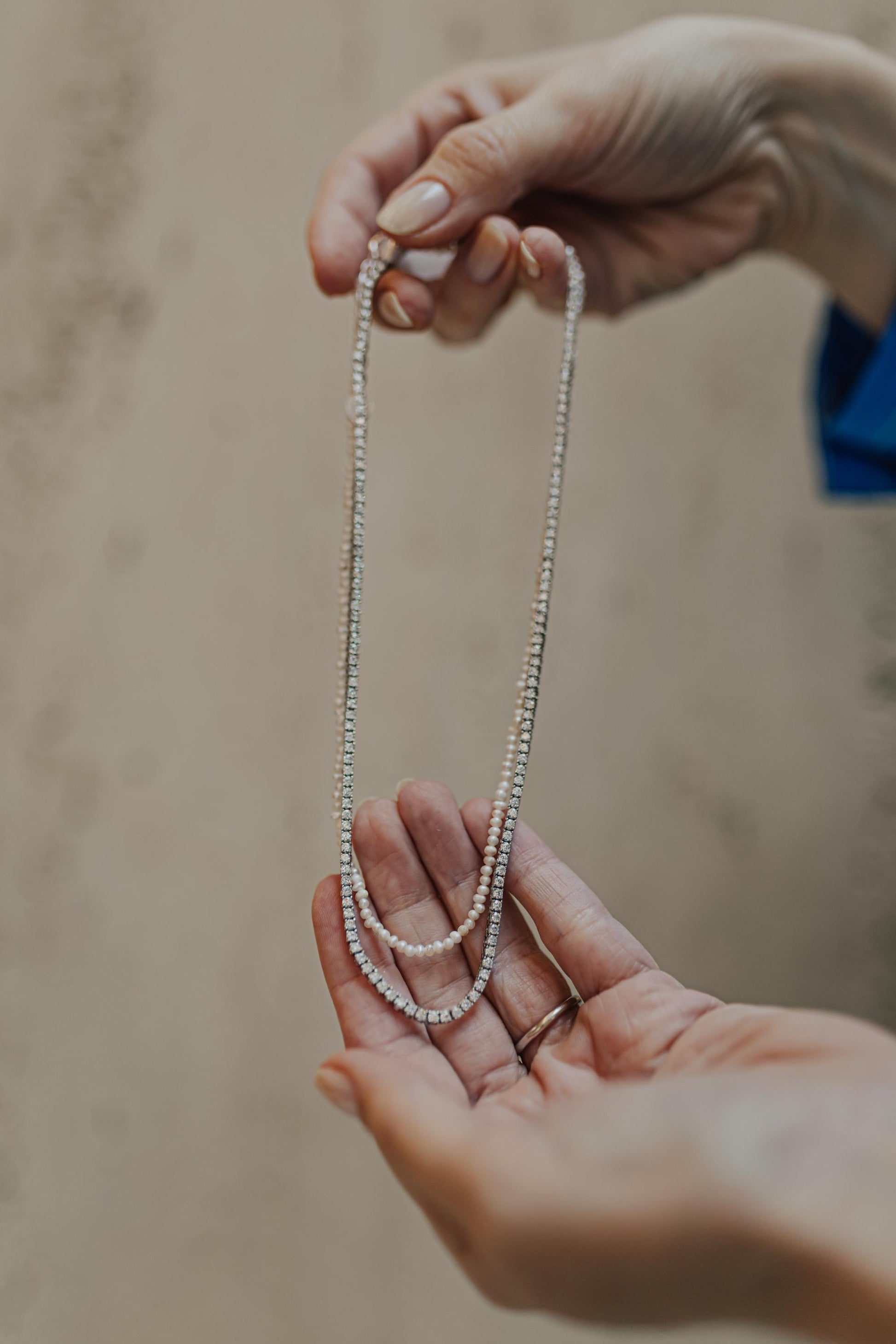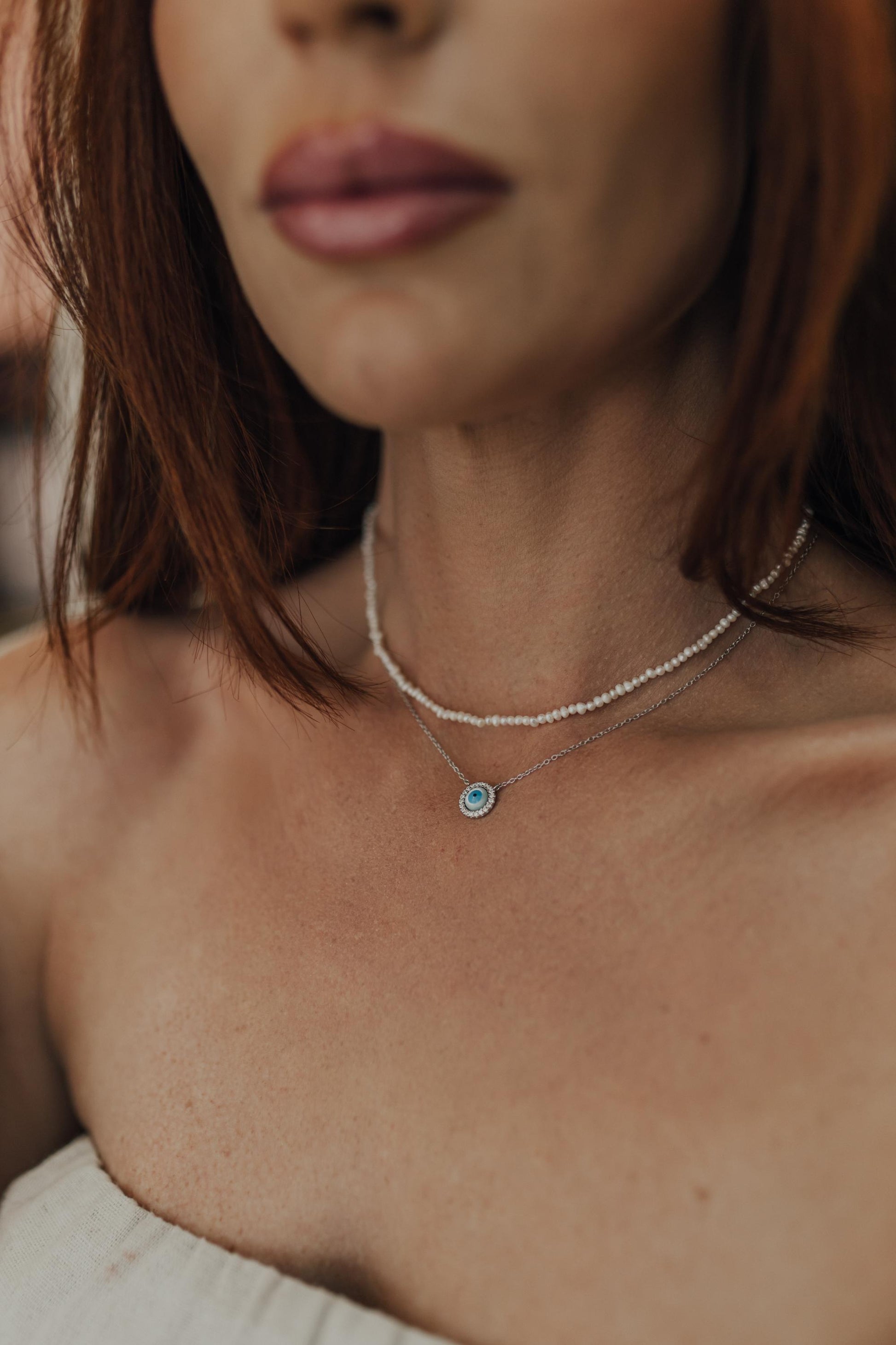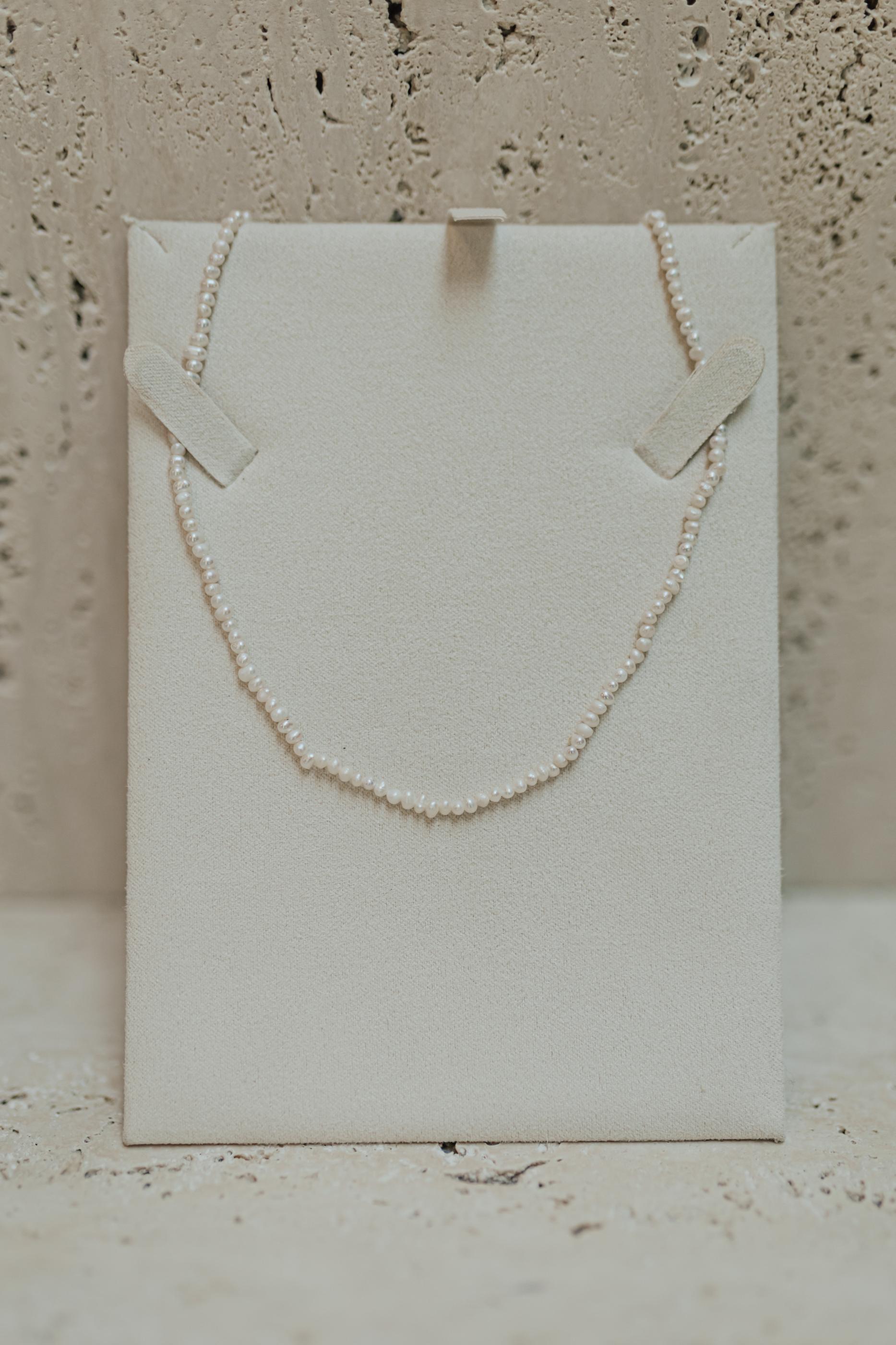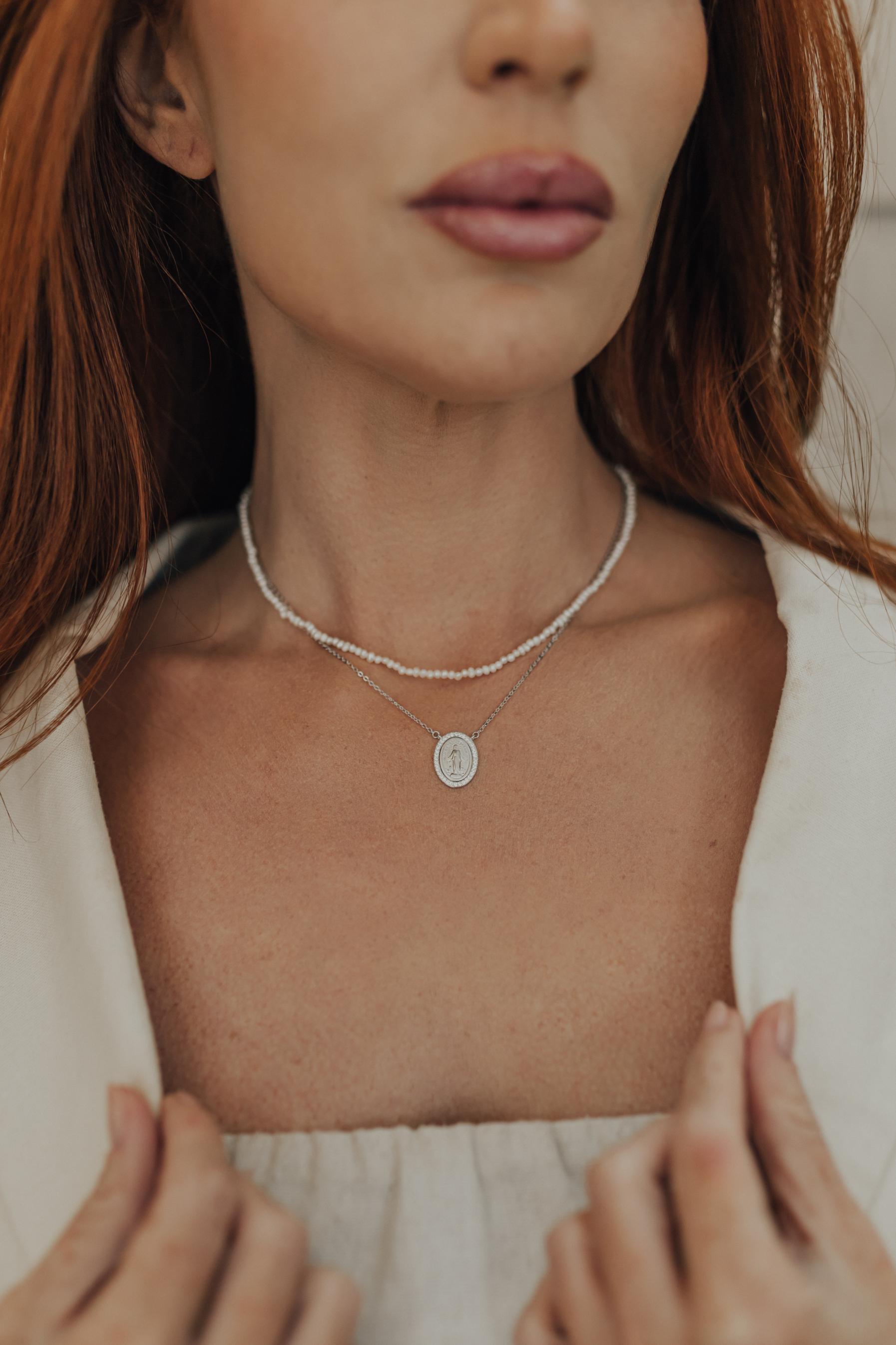 Colar de mini pérolas de água doce na prata 925 e banho de ródio branco.