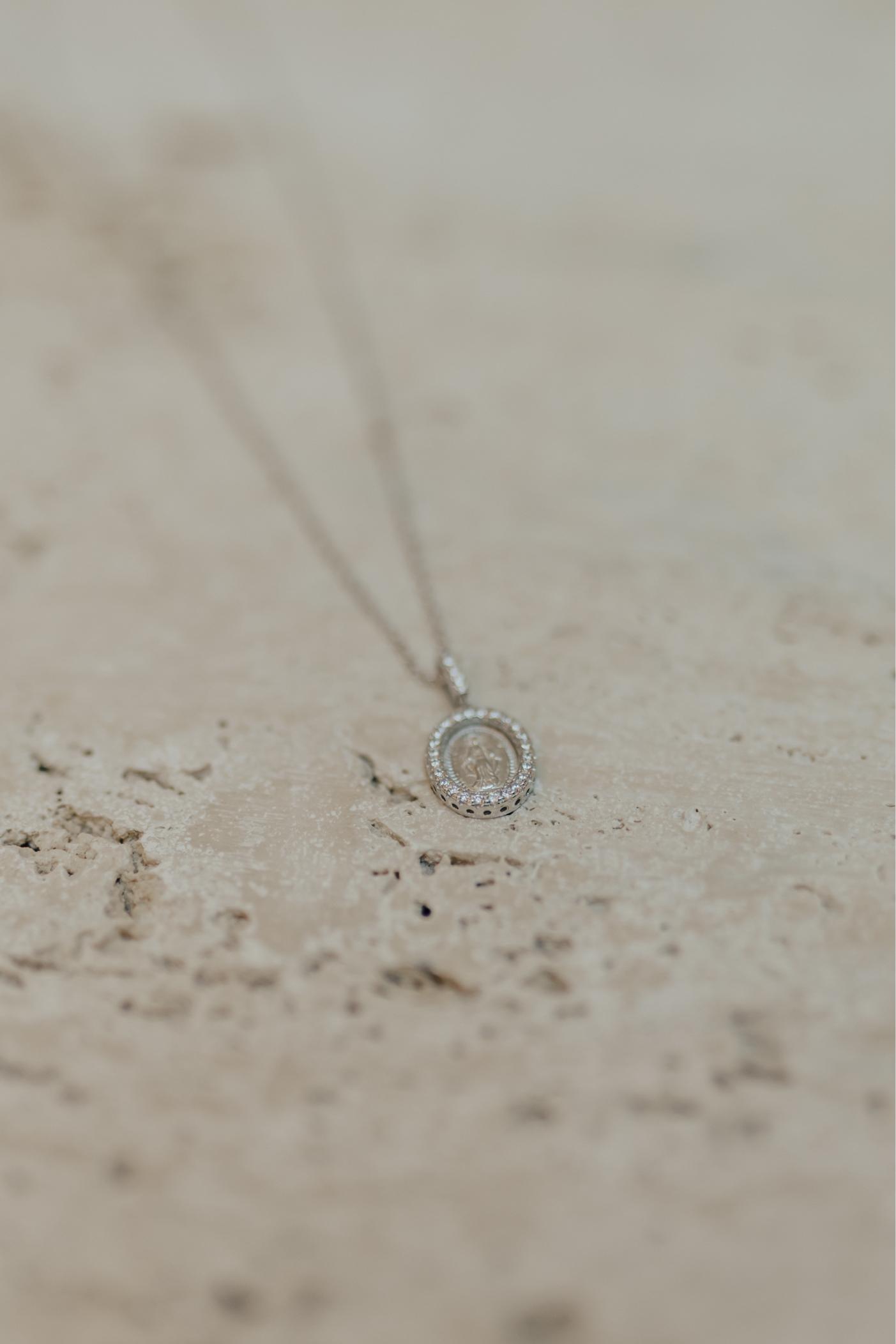 Colar Oval Medalha Nossa Senhora das Graças Prata 925 Ródio Branco
