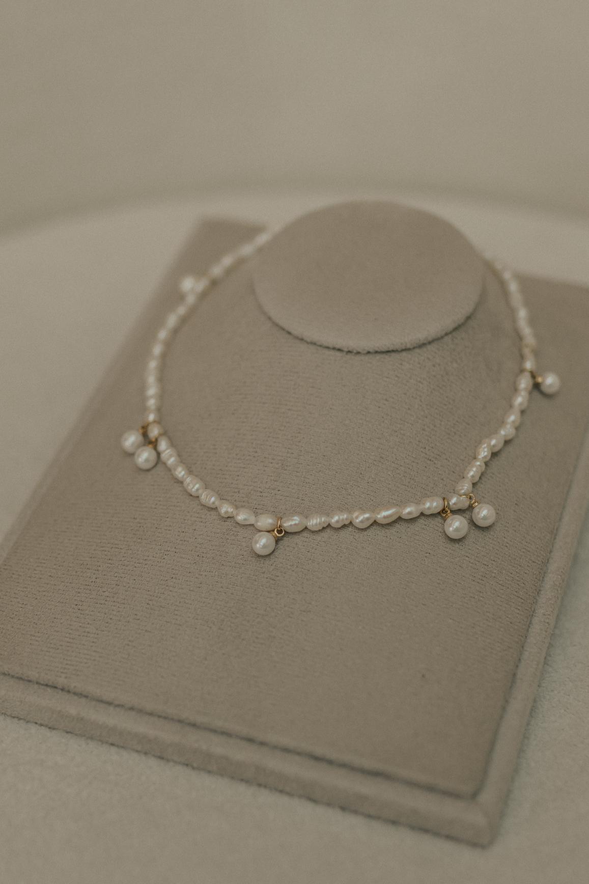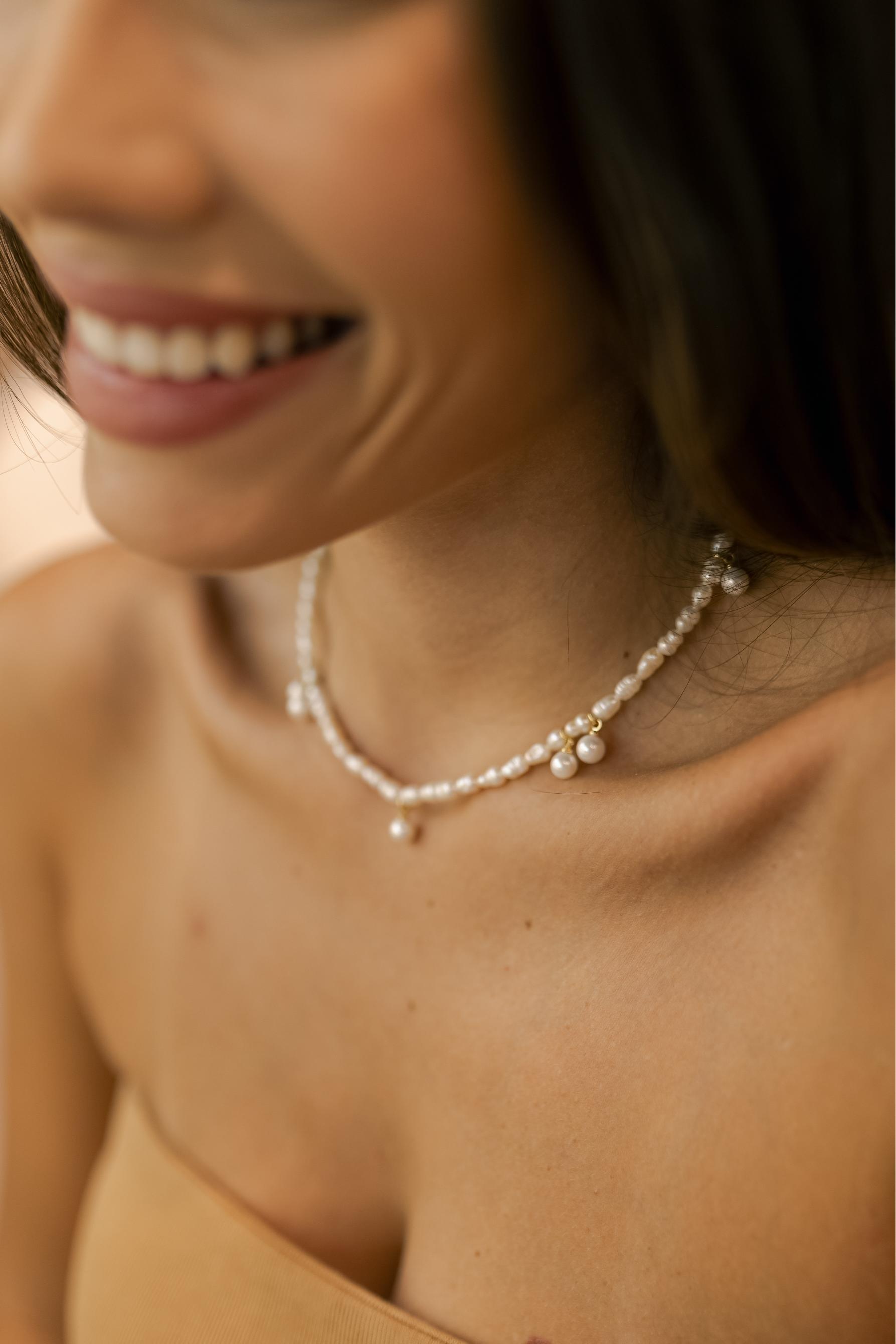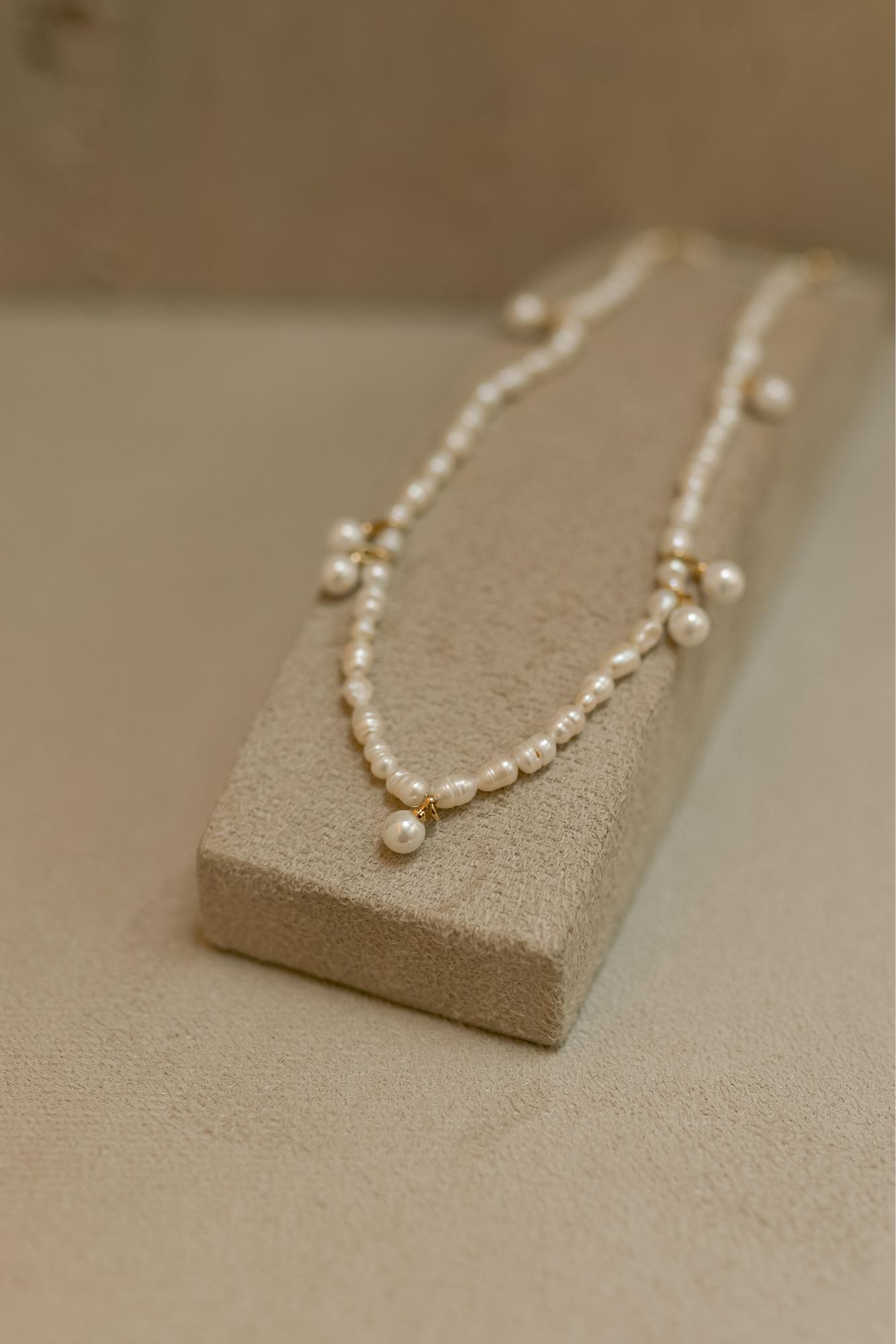 Colar de Pérolas de água doce com detalhes na extensão do colar no banho de ouro 18k.
