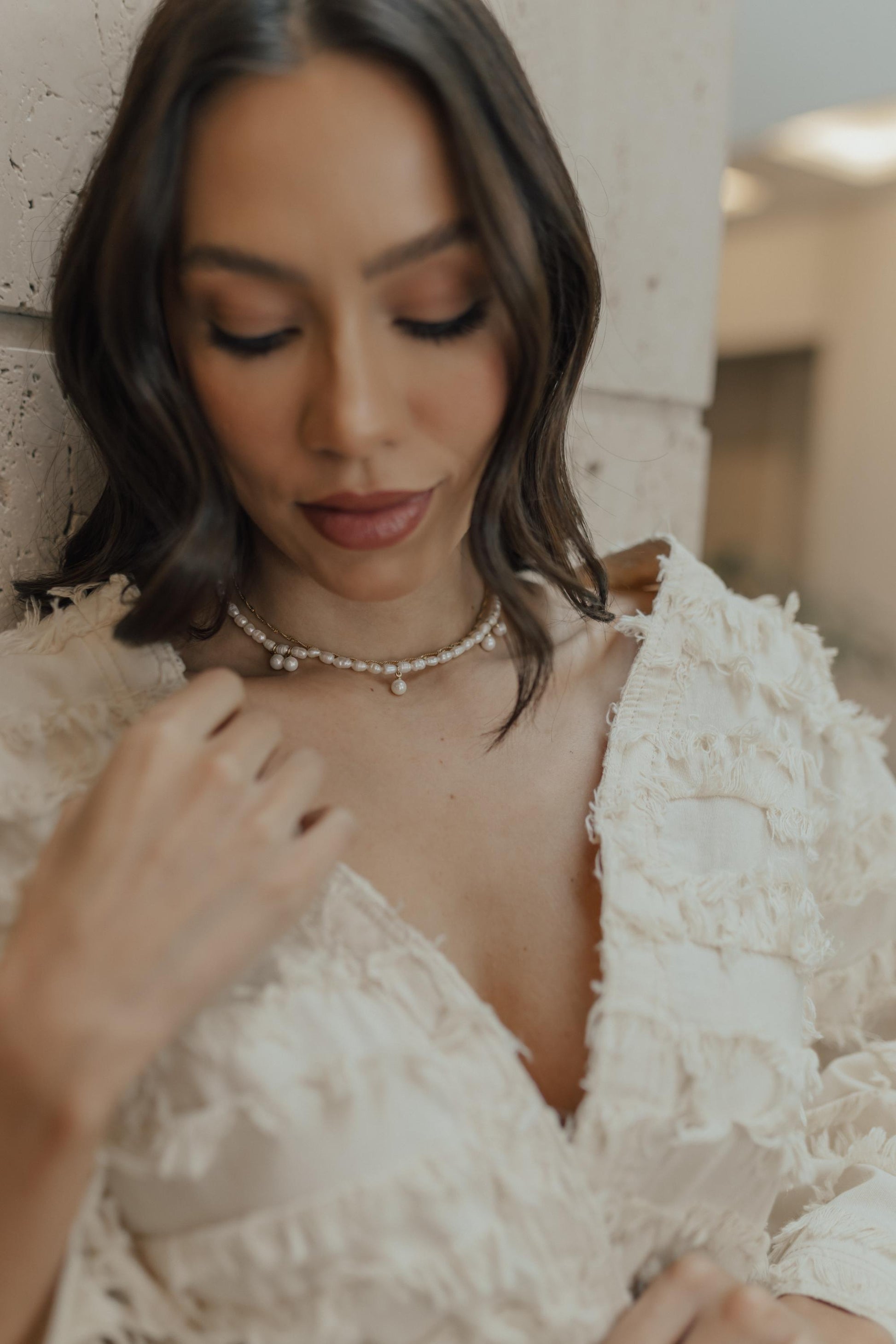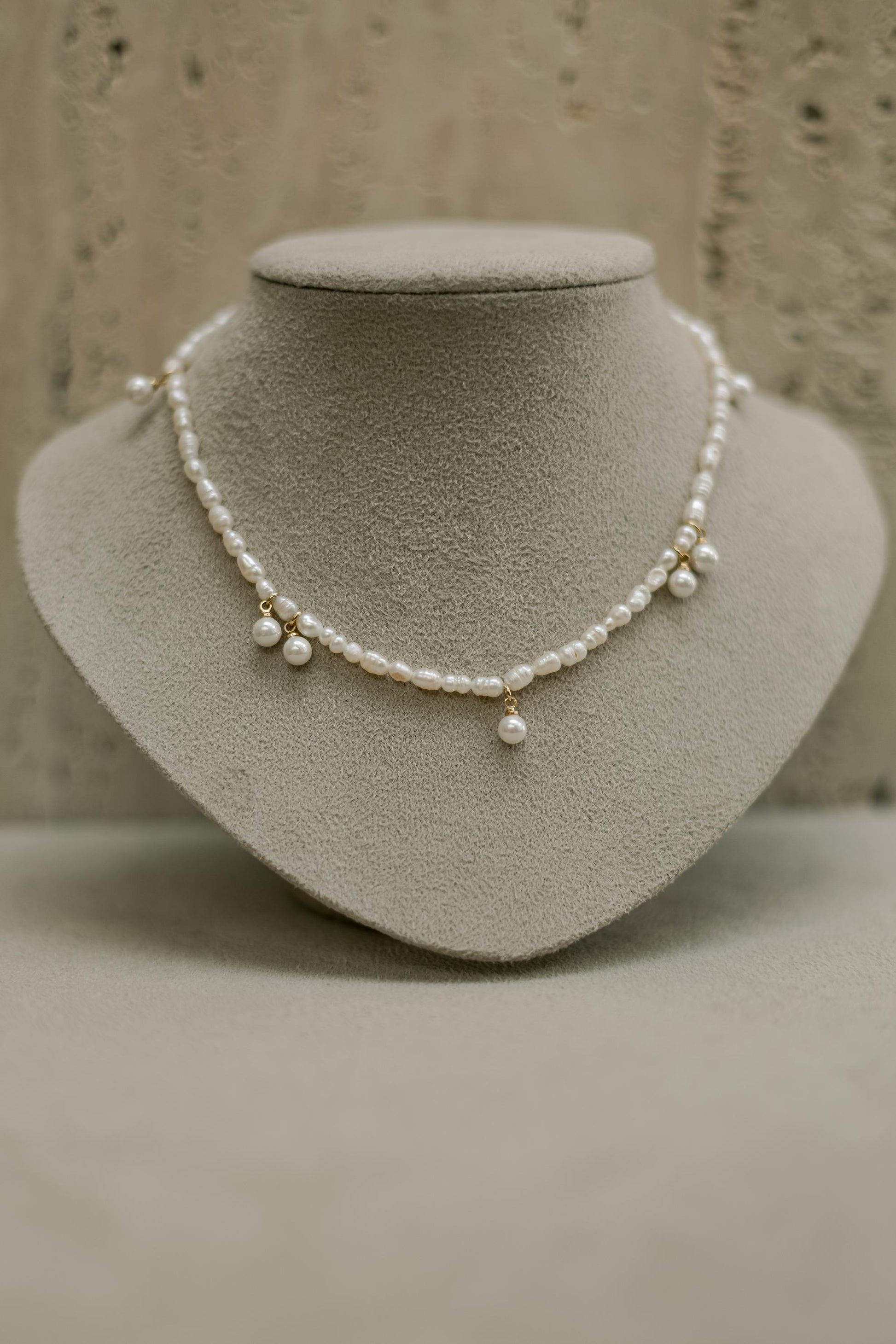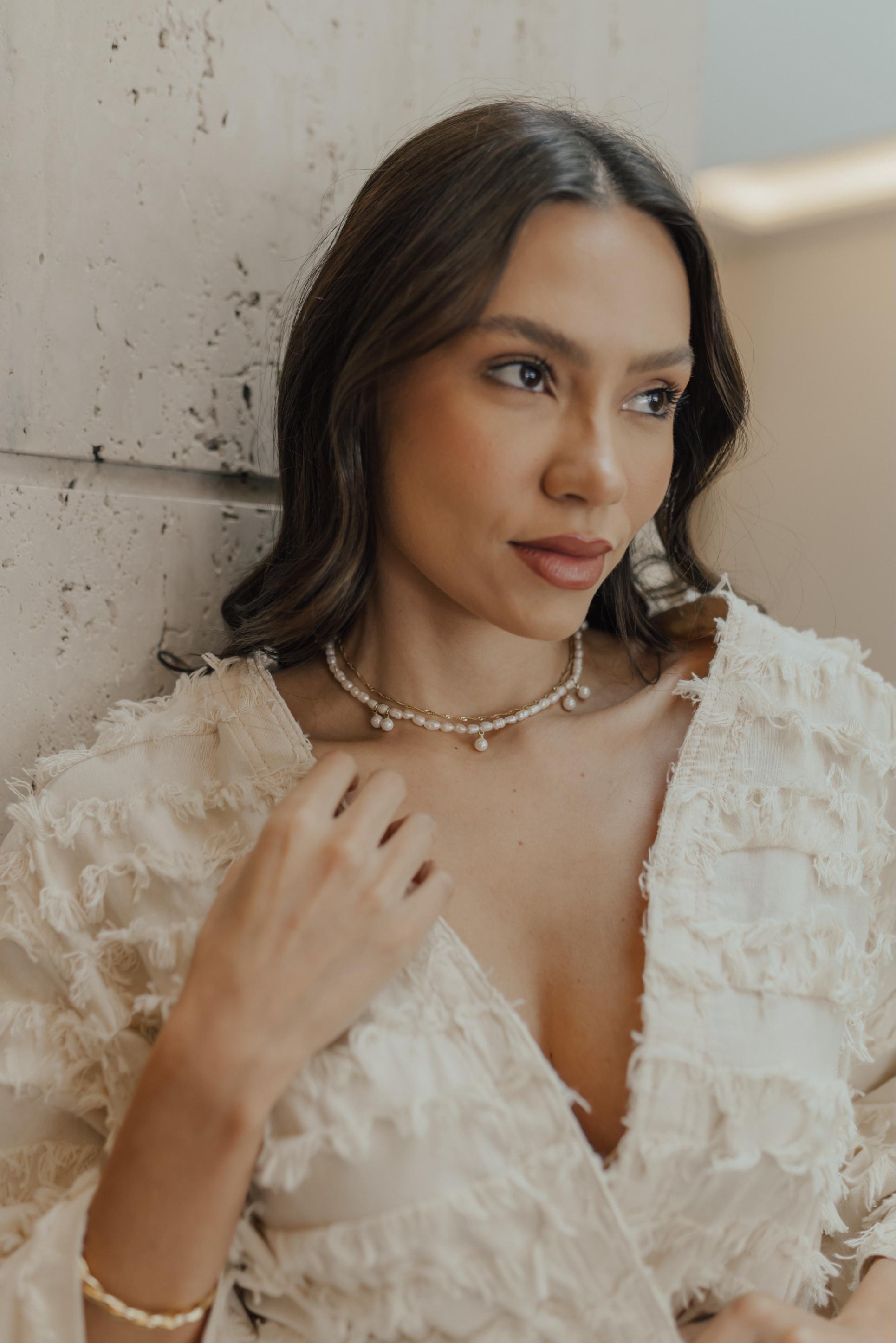 Colar de Pérolas de água doce com detalhes na extensão do colar no banho de ouro 18k.