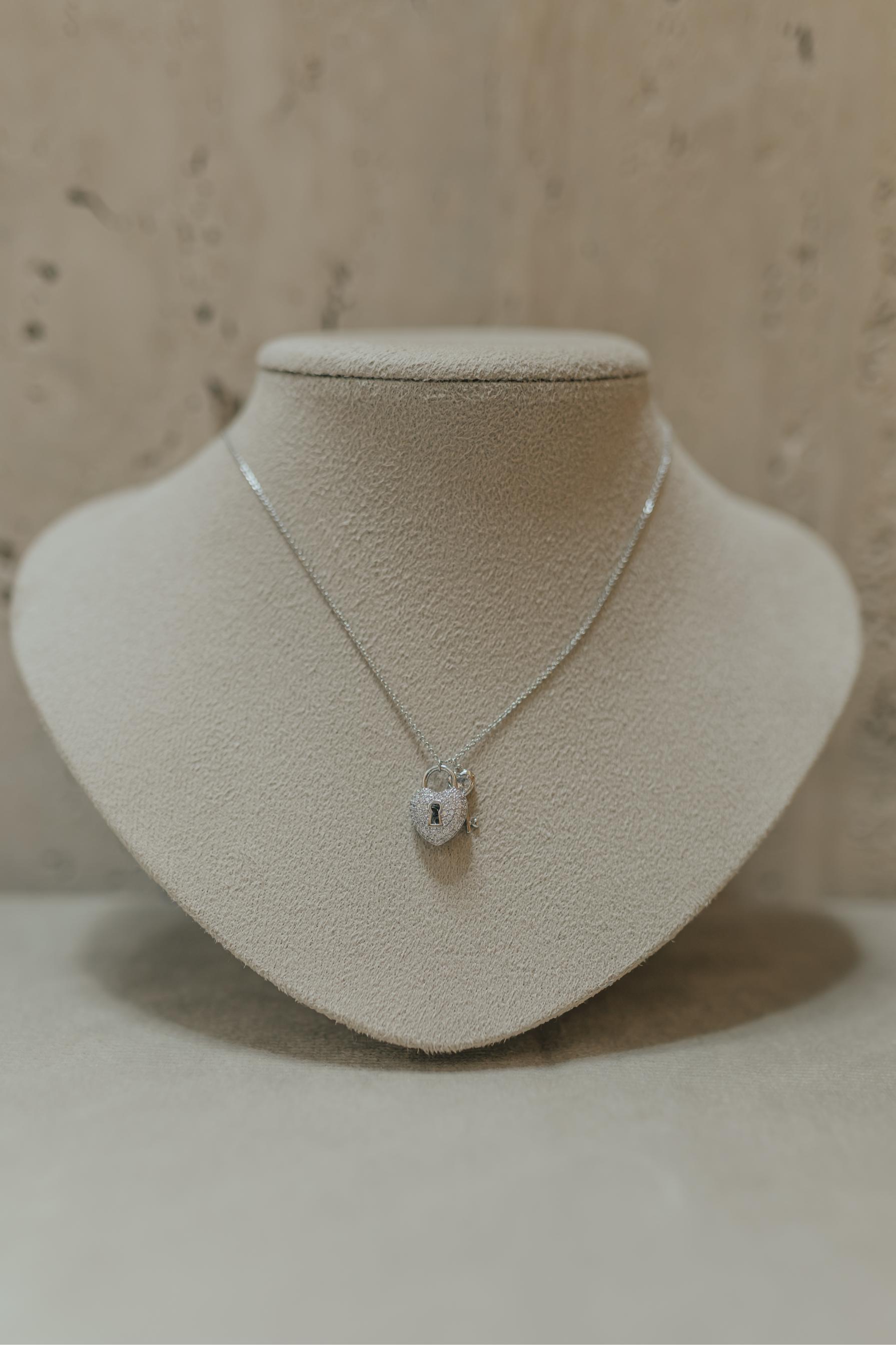 Colar Pingente Coração Cadeado E Chave Ródio Branco