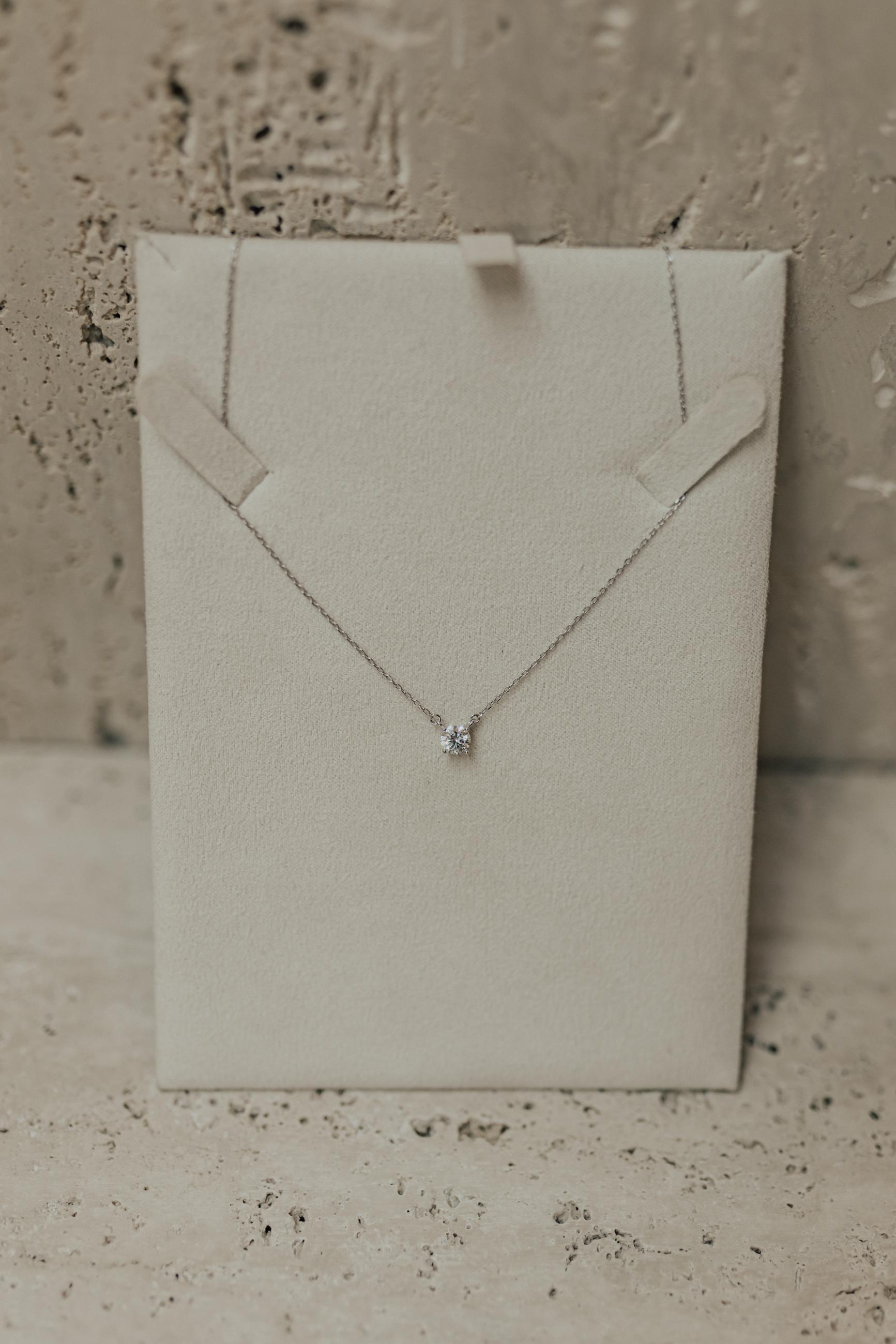 Colar Solitário de ponto de luz 4 garras na prata 925 com pedra Moissanite no banho de ródio branco.