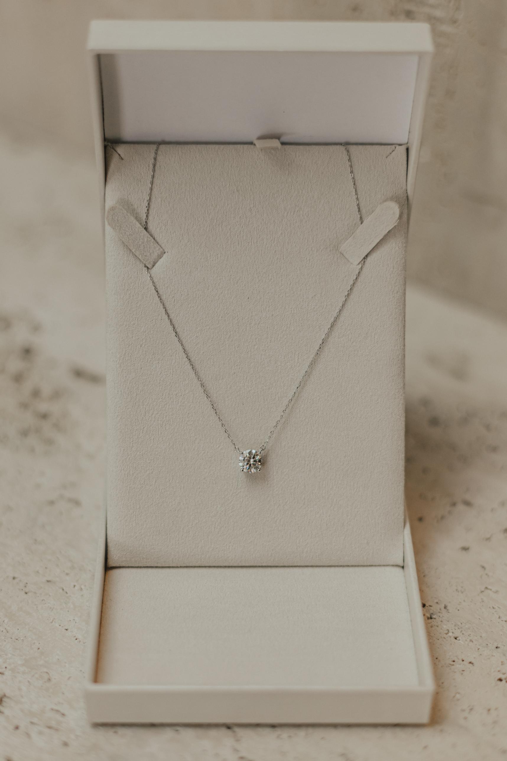 Colar Solitário de ponto de luz 4 garras na prata 925 com pedra Moissanite no banho de ródio branco.