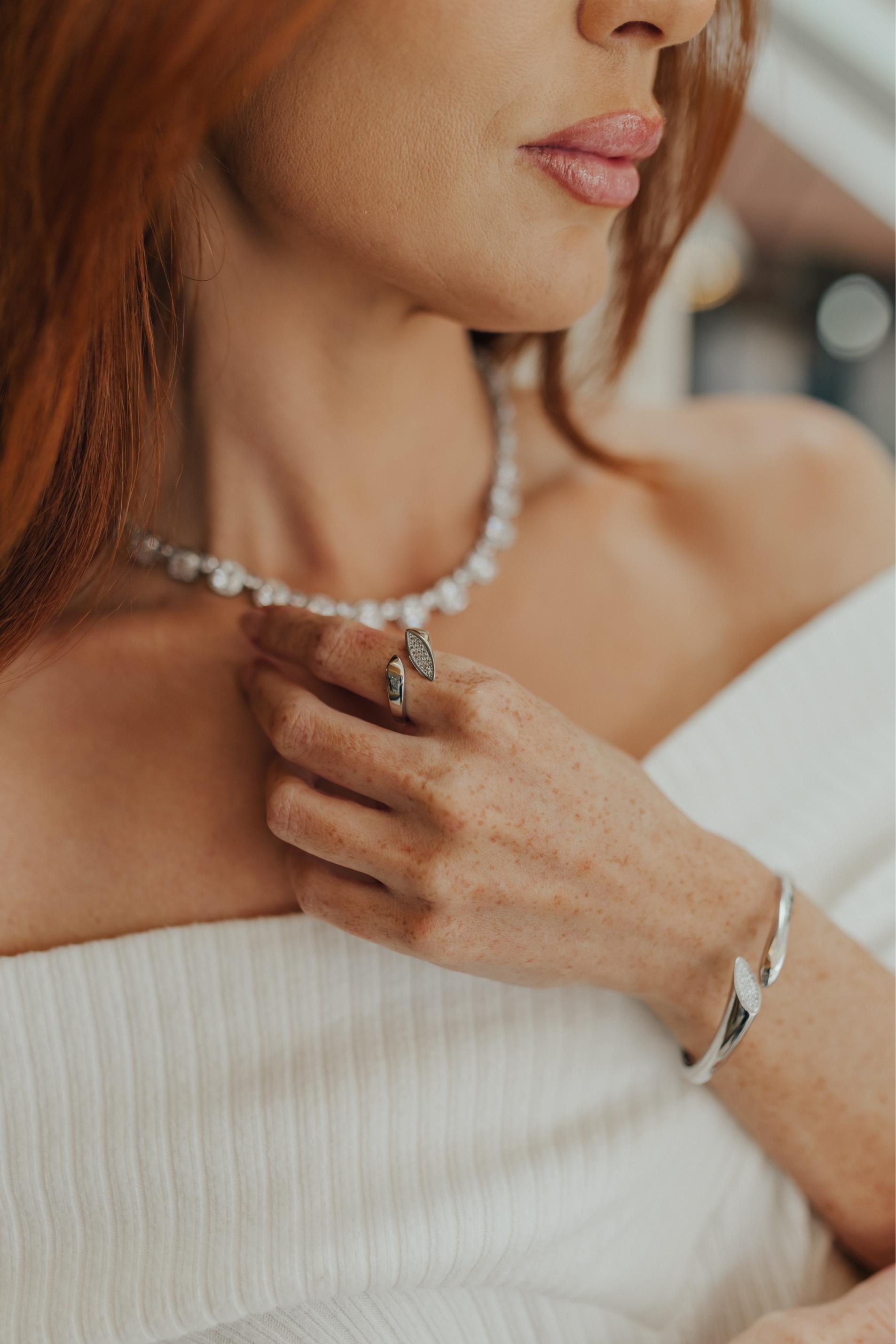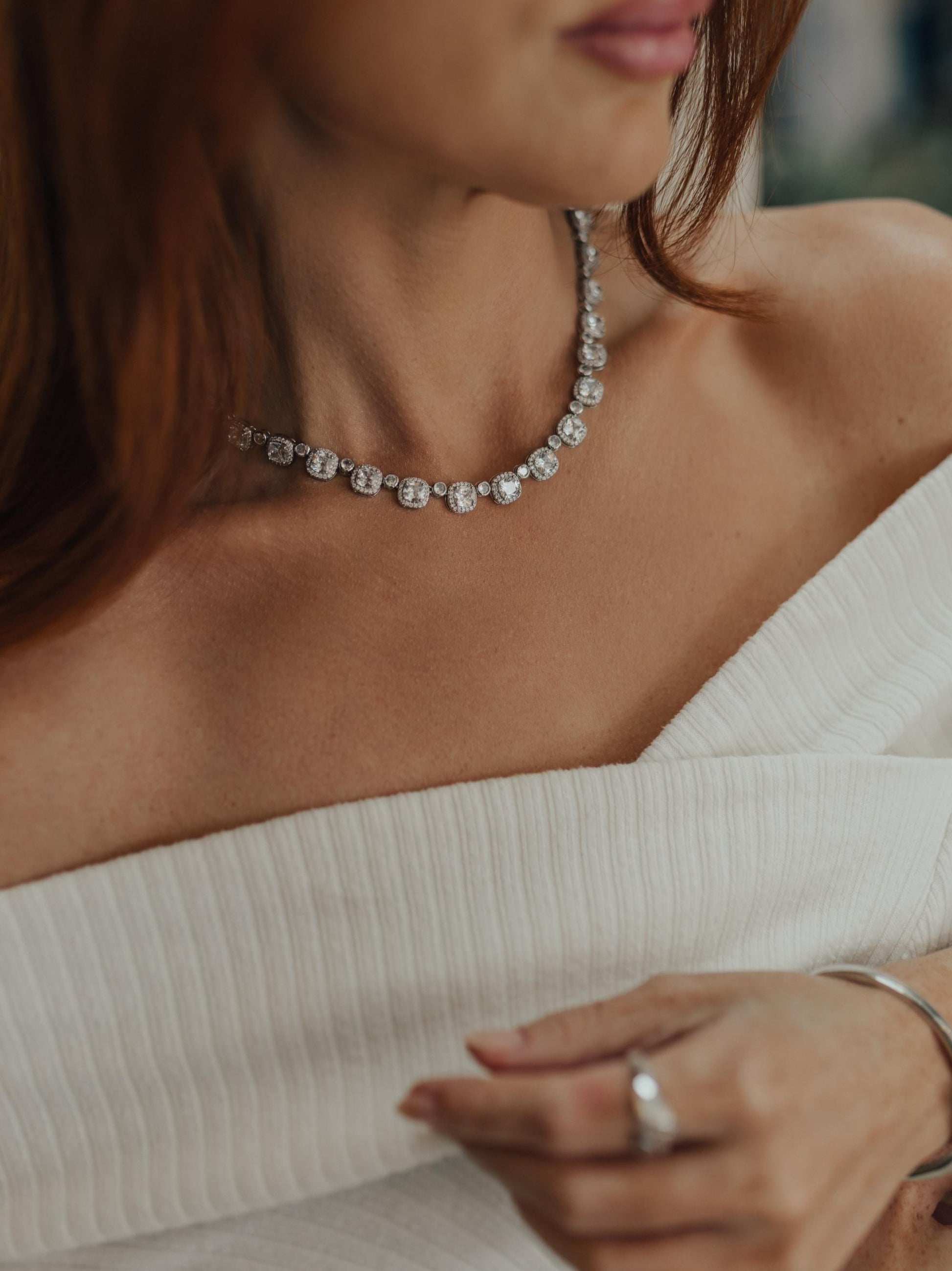 Colar RIviera quadrado todo cravejado no banho de ródio branco.