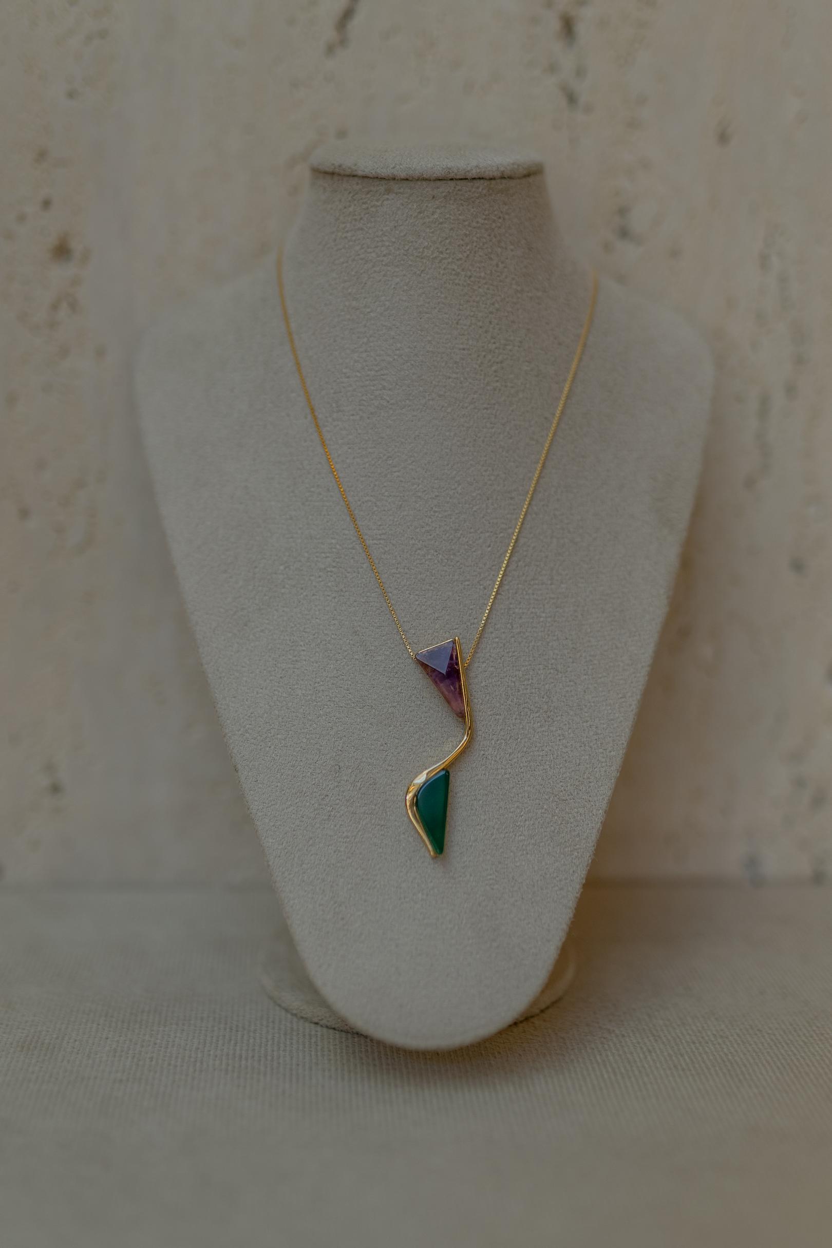 Colar com mix de pedras naturais: ametista e agatá verde no banho de Dourado 18k.