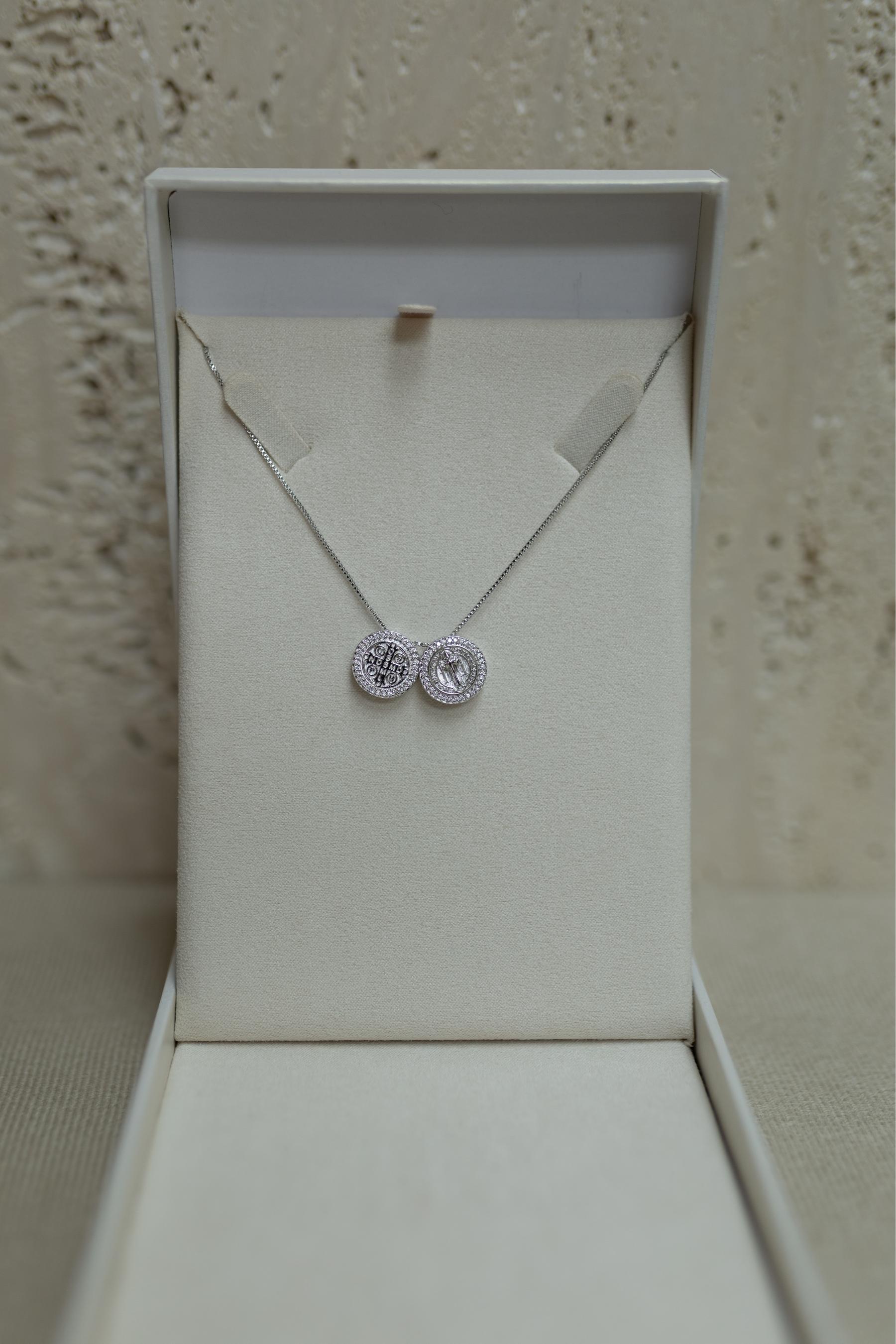 Colar Escapulário De São Bento Cravejado Articulável Ródio Branco