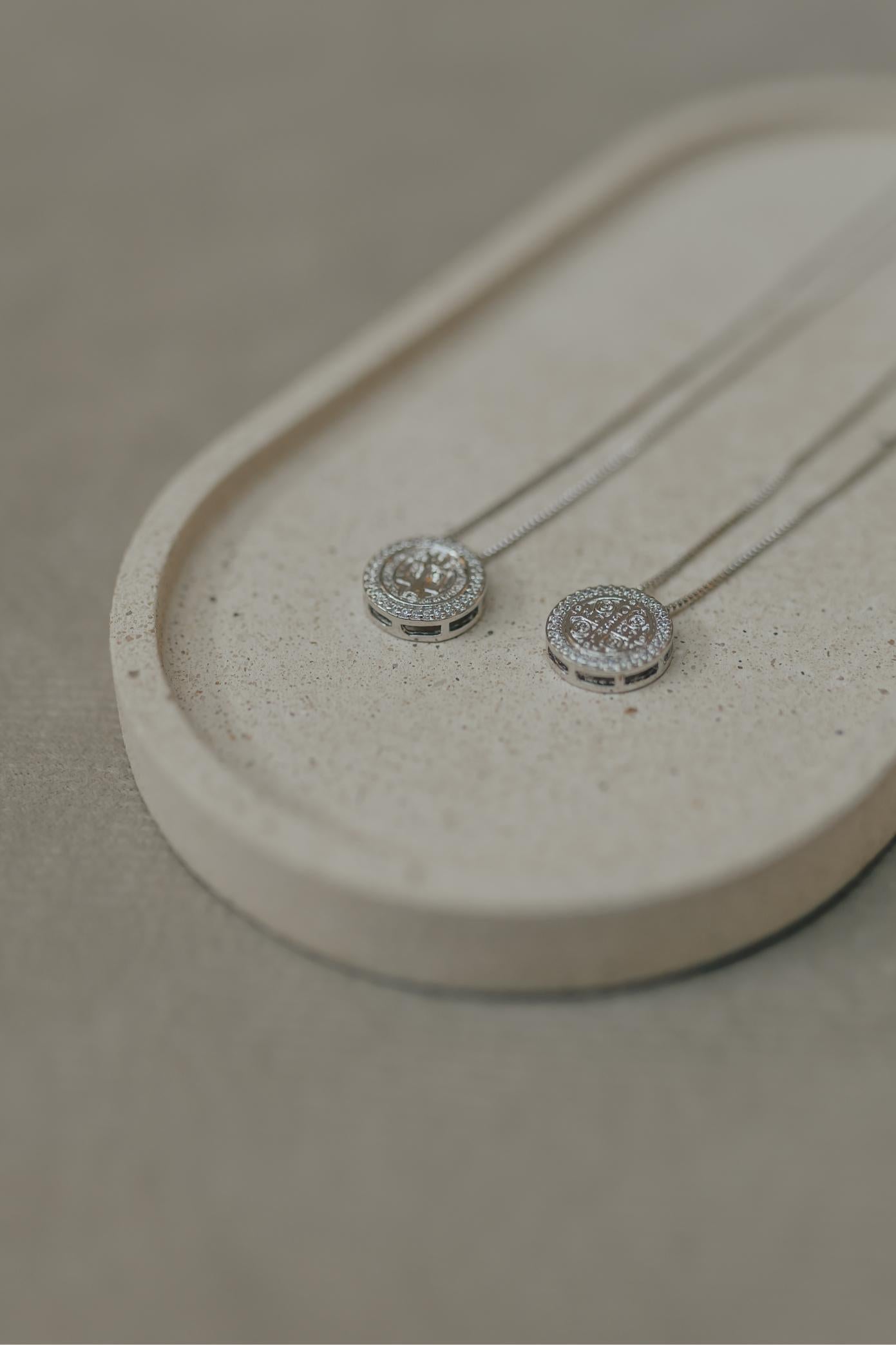 O Escapulário de São Bento é um poderoso amuleto de fé. Use os pingentes separados ou juntos, expressando sua devoção e proteção contra inveja, intrigas e mau-olhado. Uma peça com significado que complementa seu visual e fortalece sua conexão com a fé.