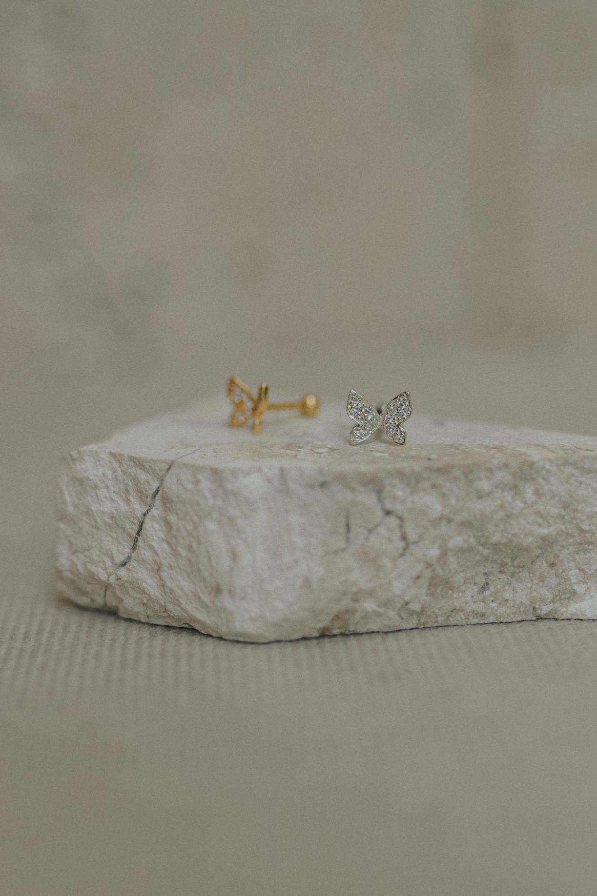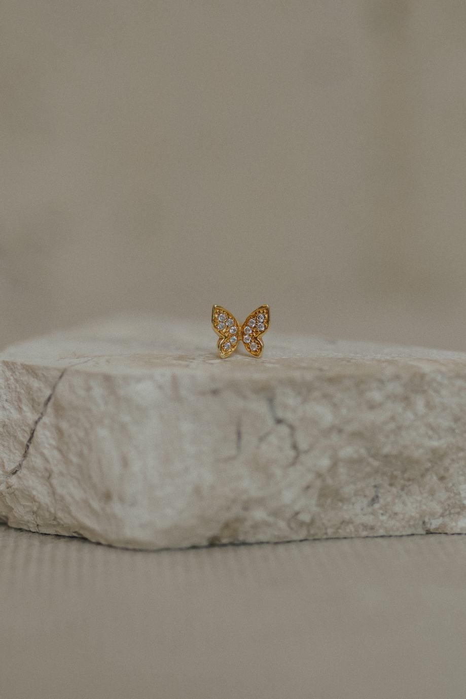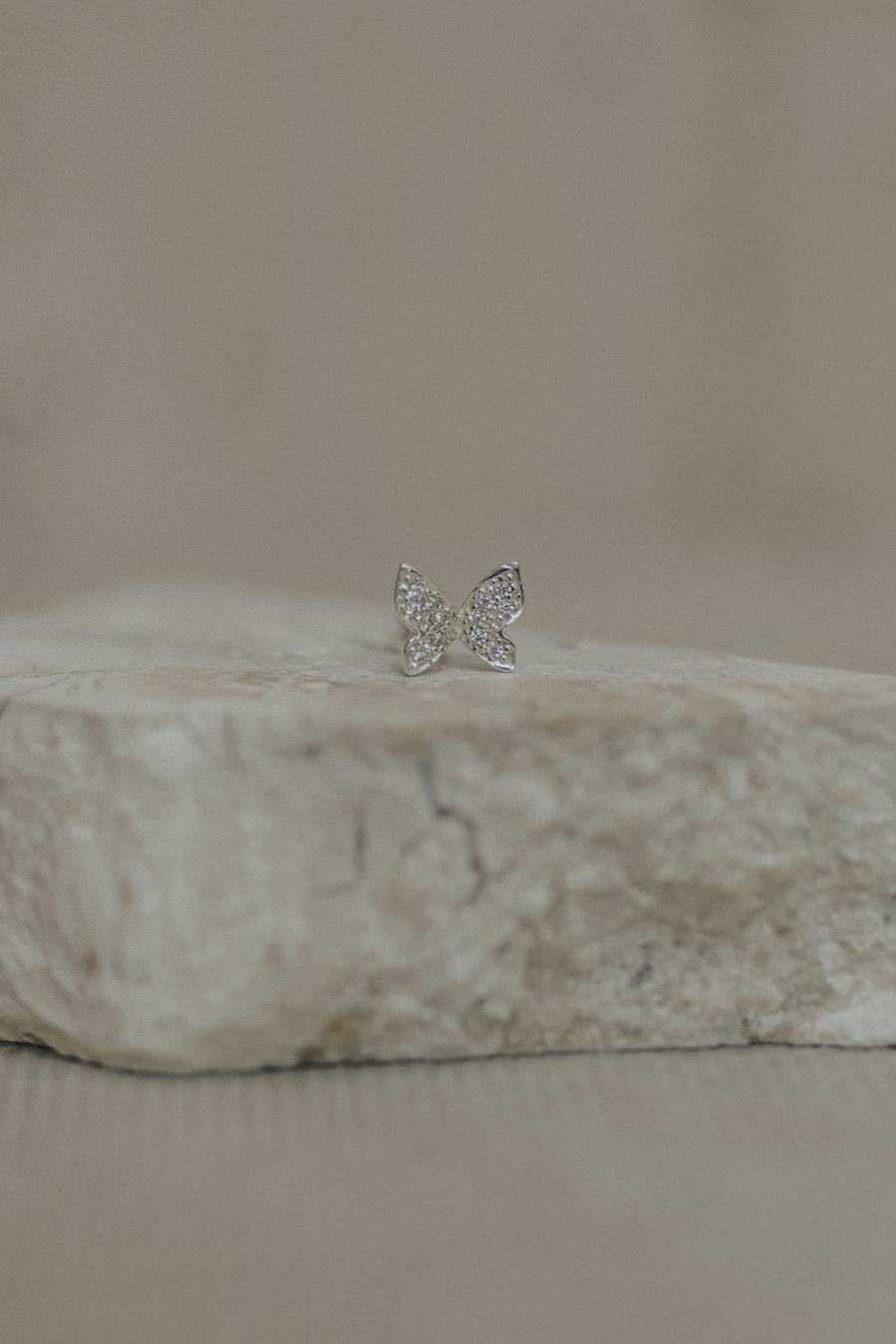 Piercing Helix de Prata 925 no formato de Borboleta cravejada com micro zircônias na cor cristal.