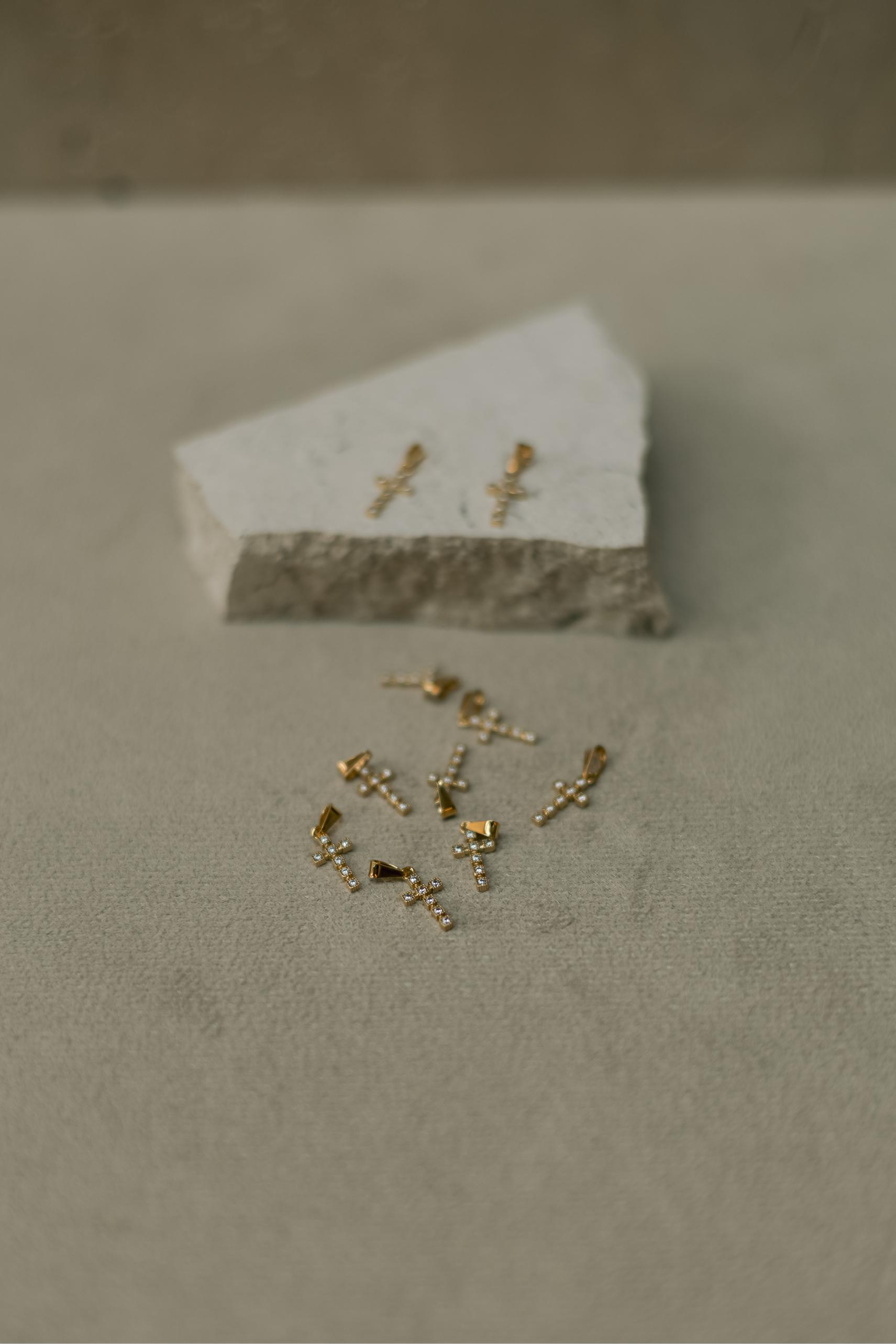Pingente crucifixo com zircônias na cor cristal no banho de ouro 18k.