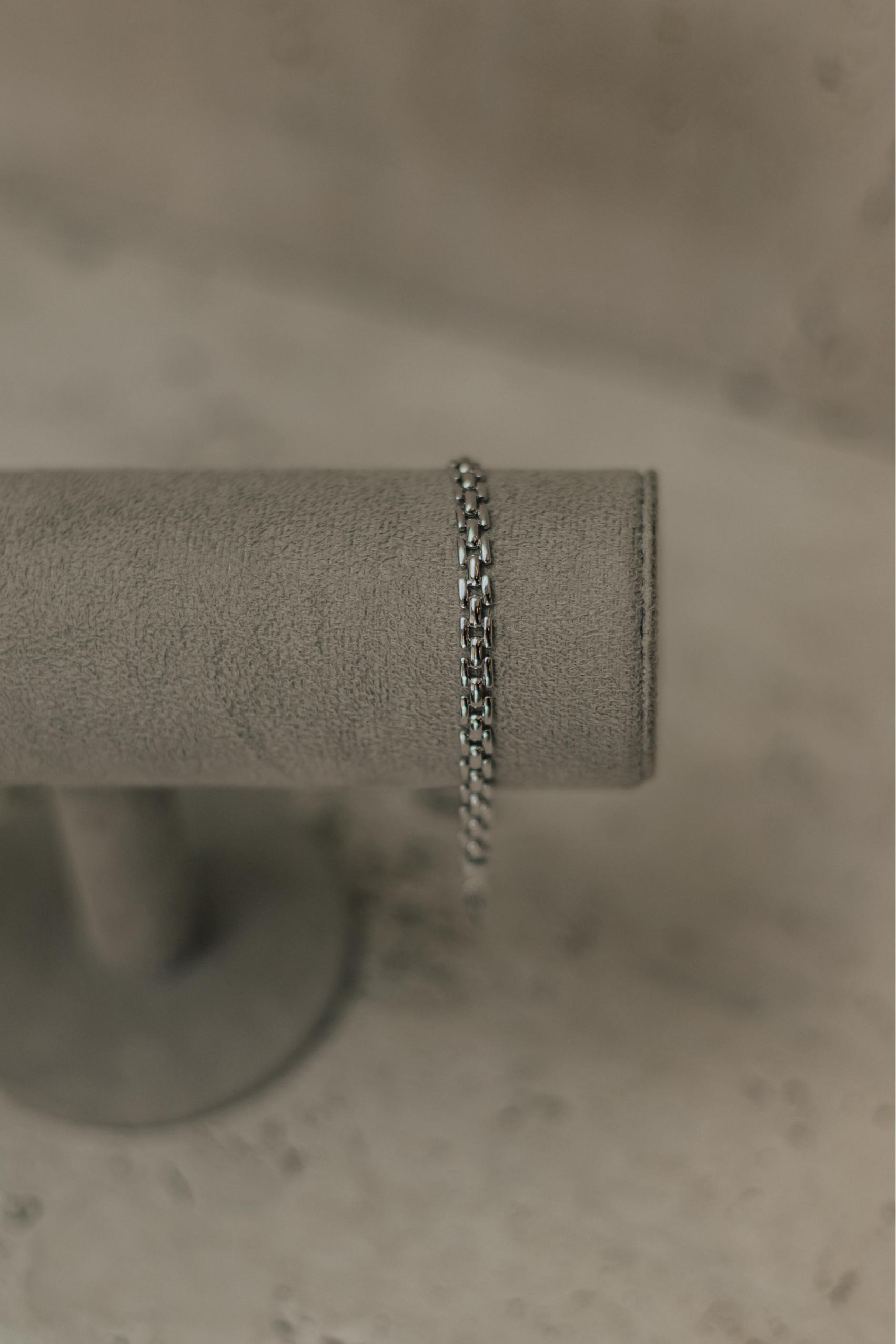 Pulseira feminina de elos no banho de ródio branco, perfeita para o seu dia a dia.