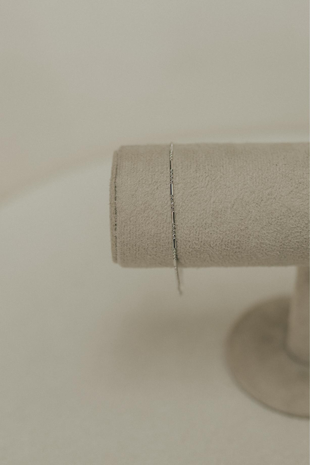 Pulseira com detalhes de palito e bolinhas no banho de ródio branco.