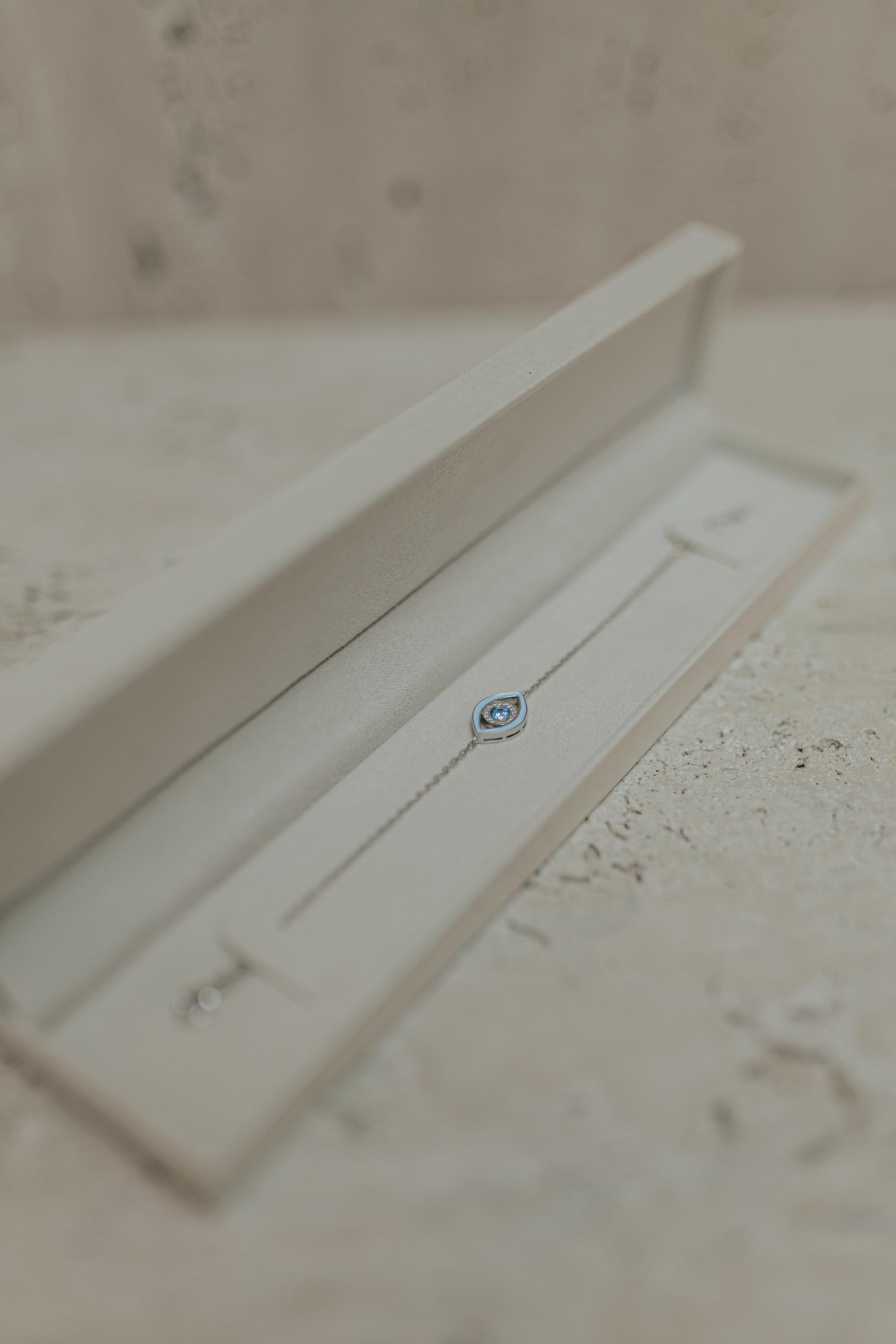 Pulseira de Olho Grego Acqua Esmaltada Prata 925 Ródio Branco
