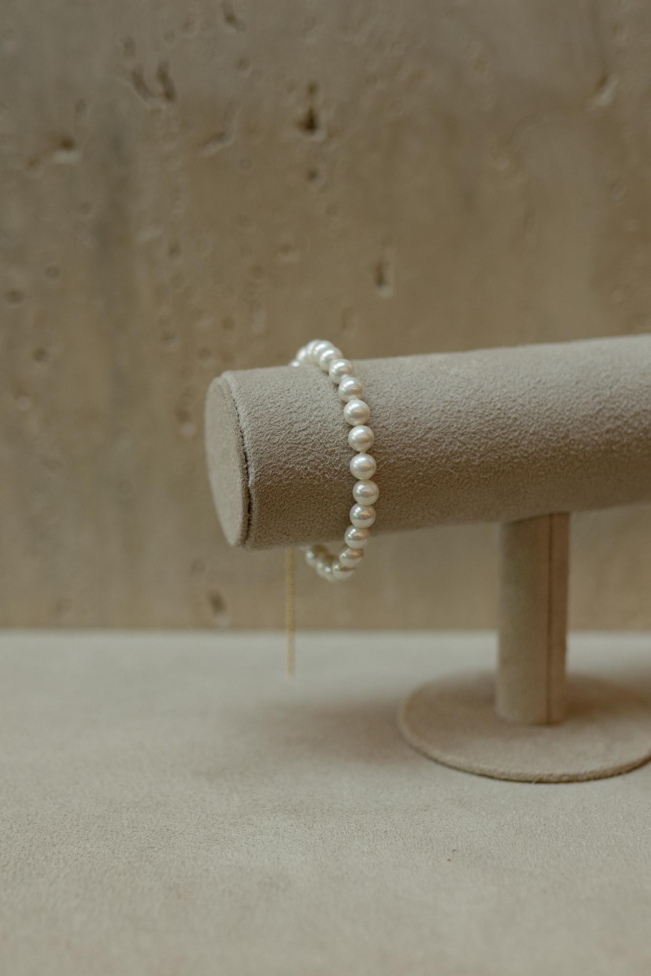 Pulseira com toda sua extensão de pérola shell no banho de ouro 18k.