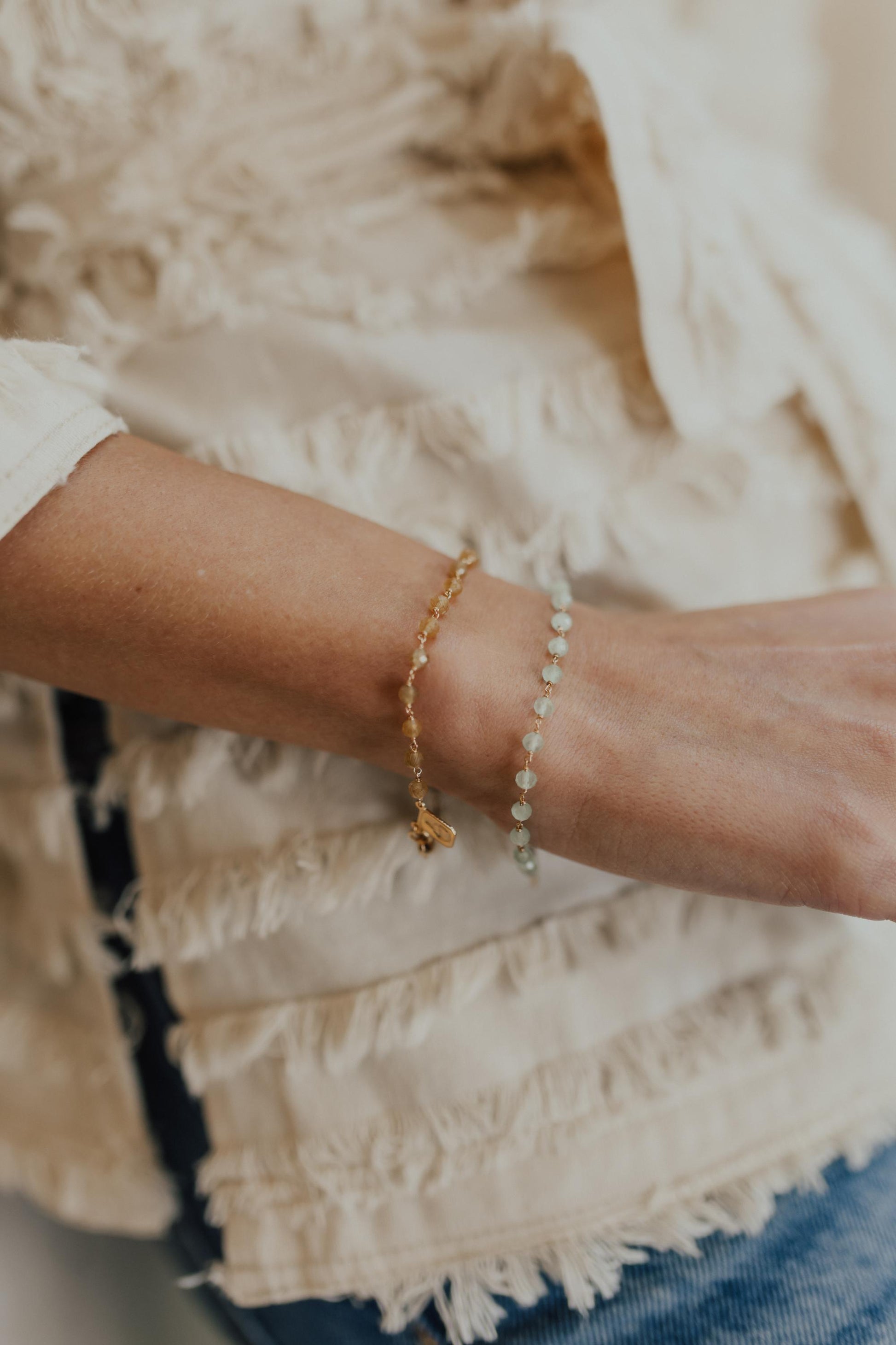 A pulseira possui um fecho seguro e confortável, garantindo um ajuste perfeito para o pulso. Seu estilo delicado permite que seja usada tanto em ocasiões especiais quanto no dia a dia, oferecendo um toque de elegância e uma conexão espiritual constante.