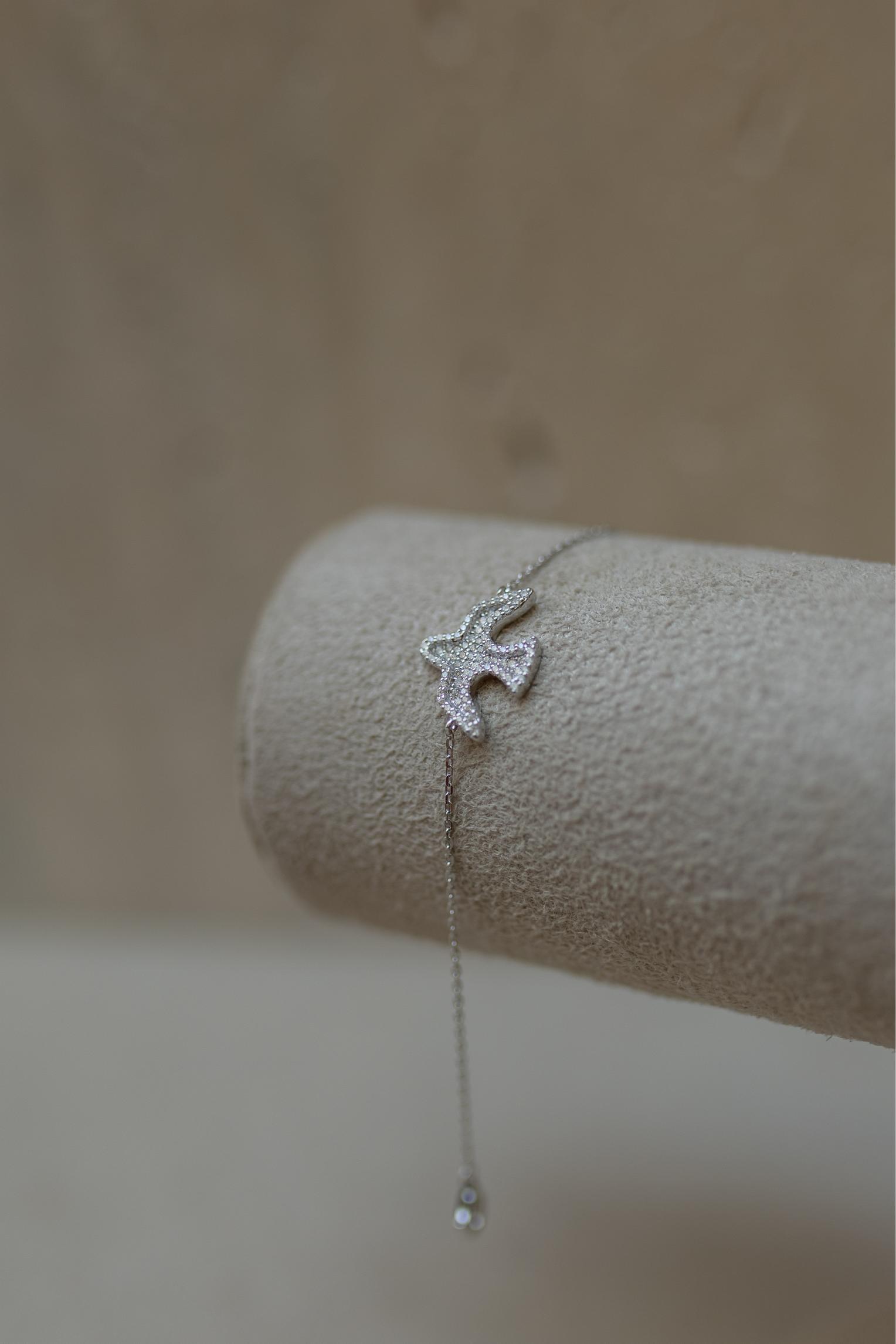 Pulseira espírito santo em prata 925 com zircônias cristal no banho de rodio branco.