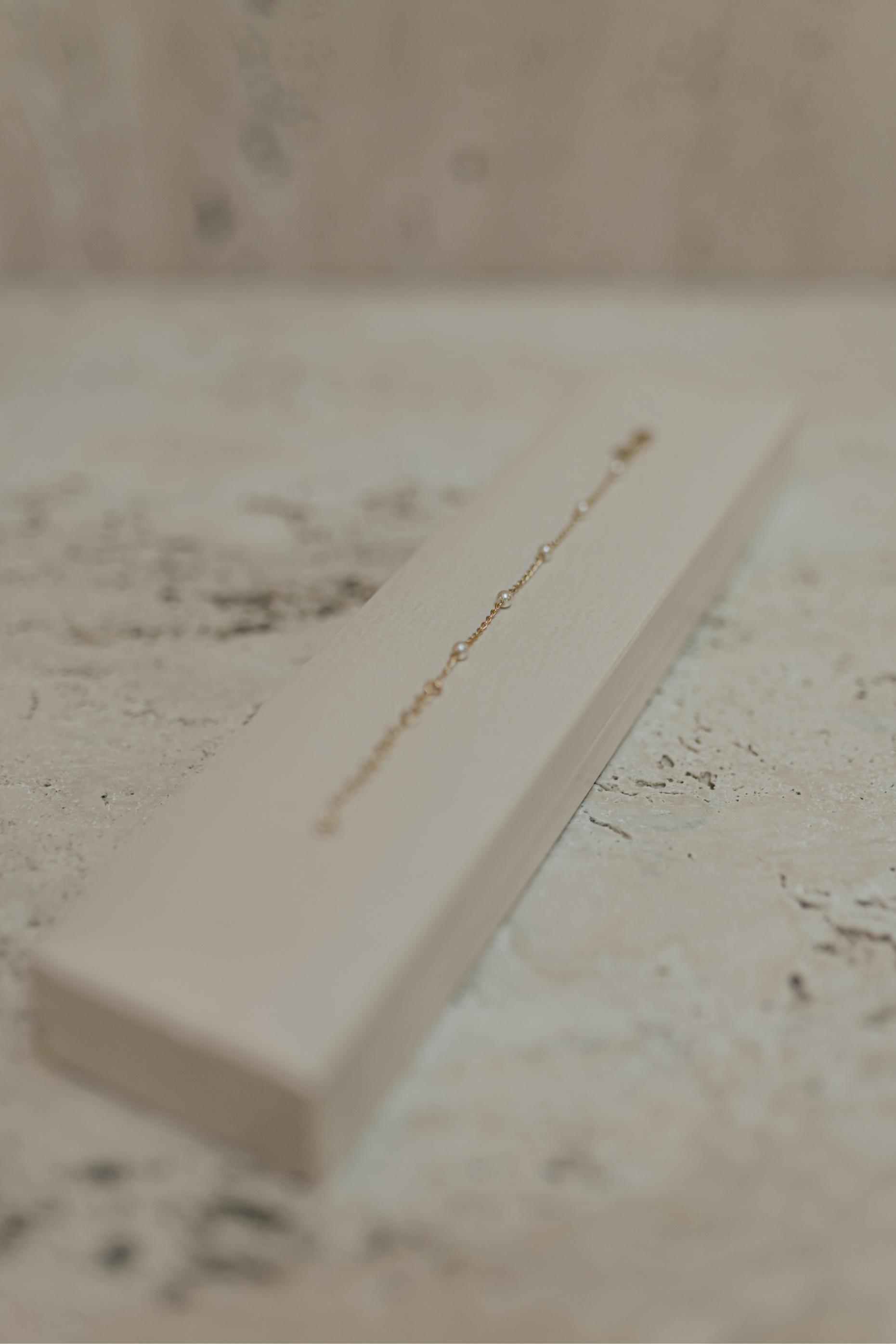 Pulseira clássica para bebês com detalhe de pérola no banho de ouro 18k.