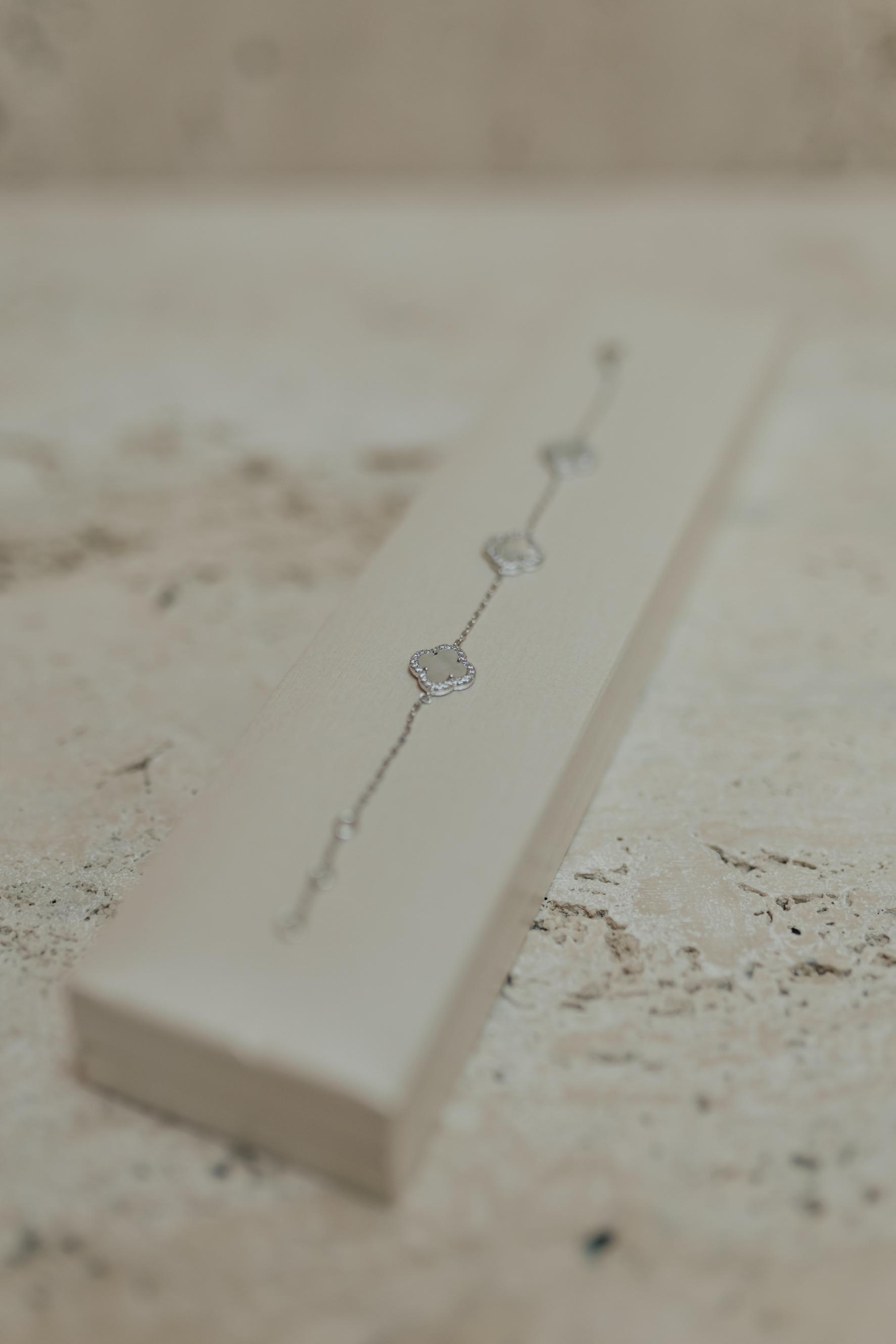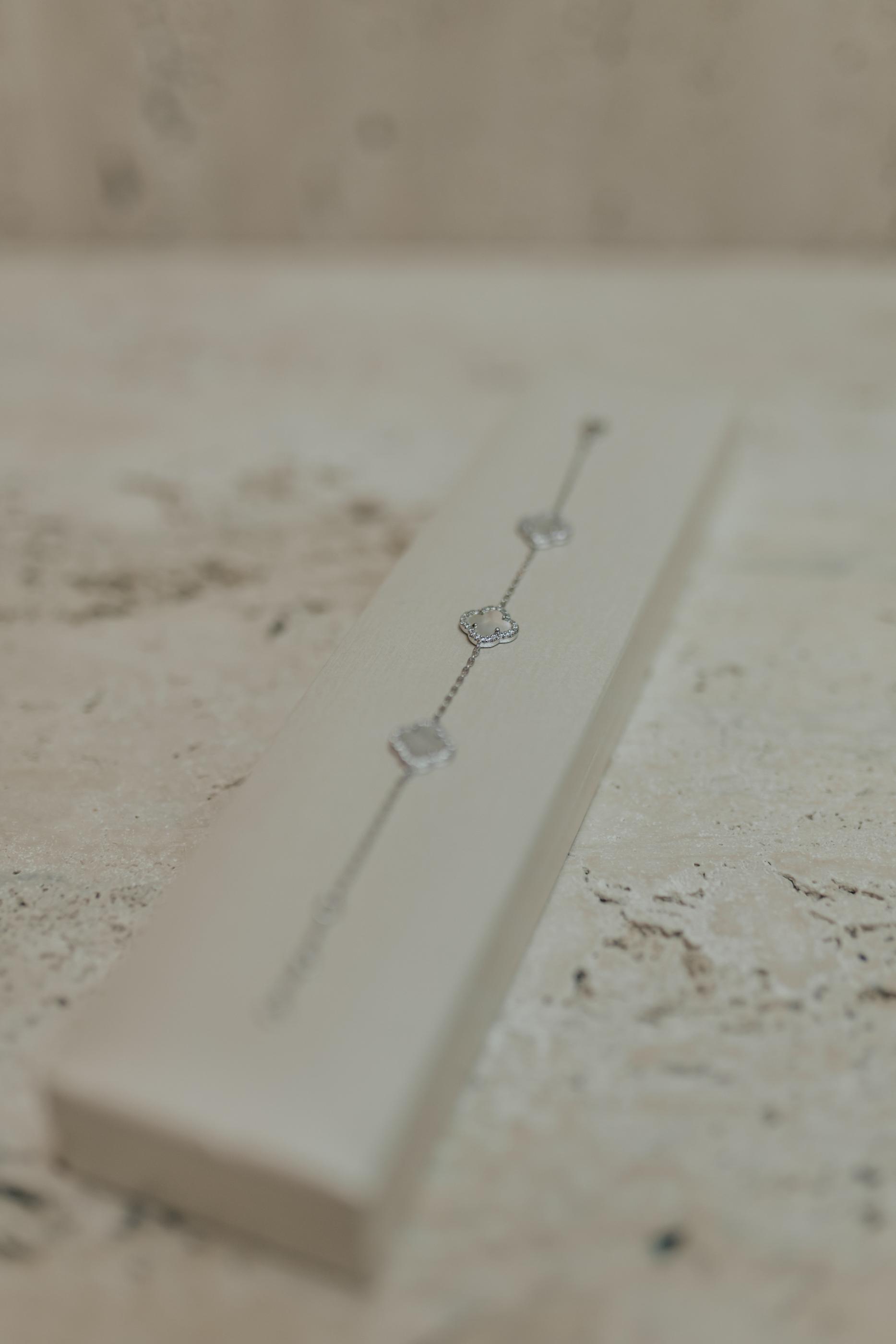 Pulseira Inspo Trevos Madrepérola Prata 925 Ródio Branco