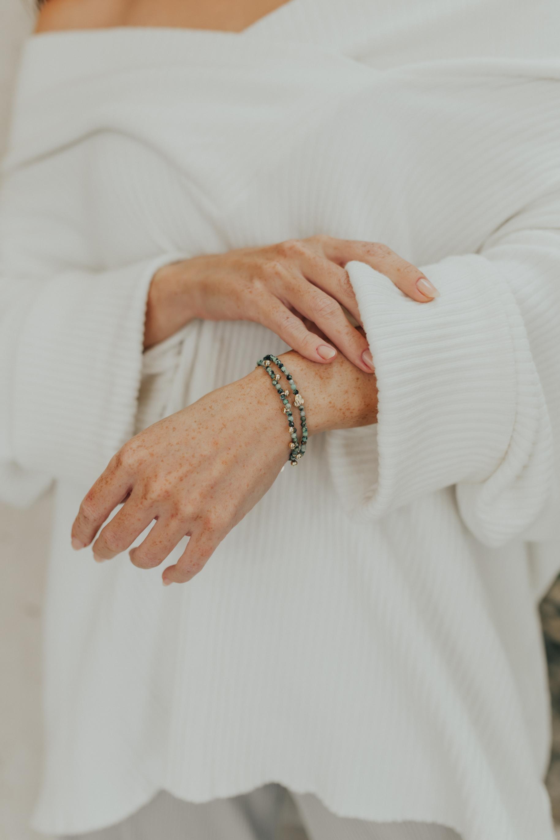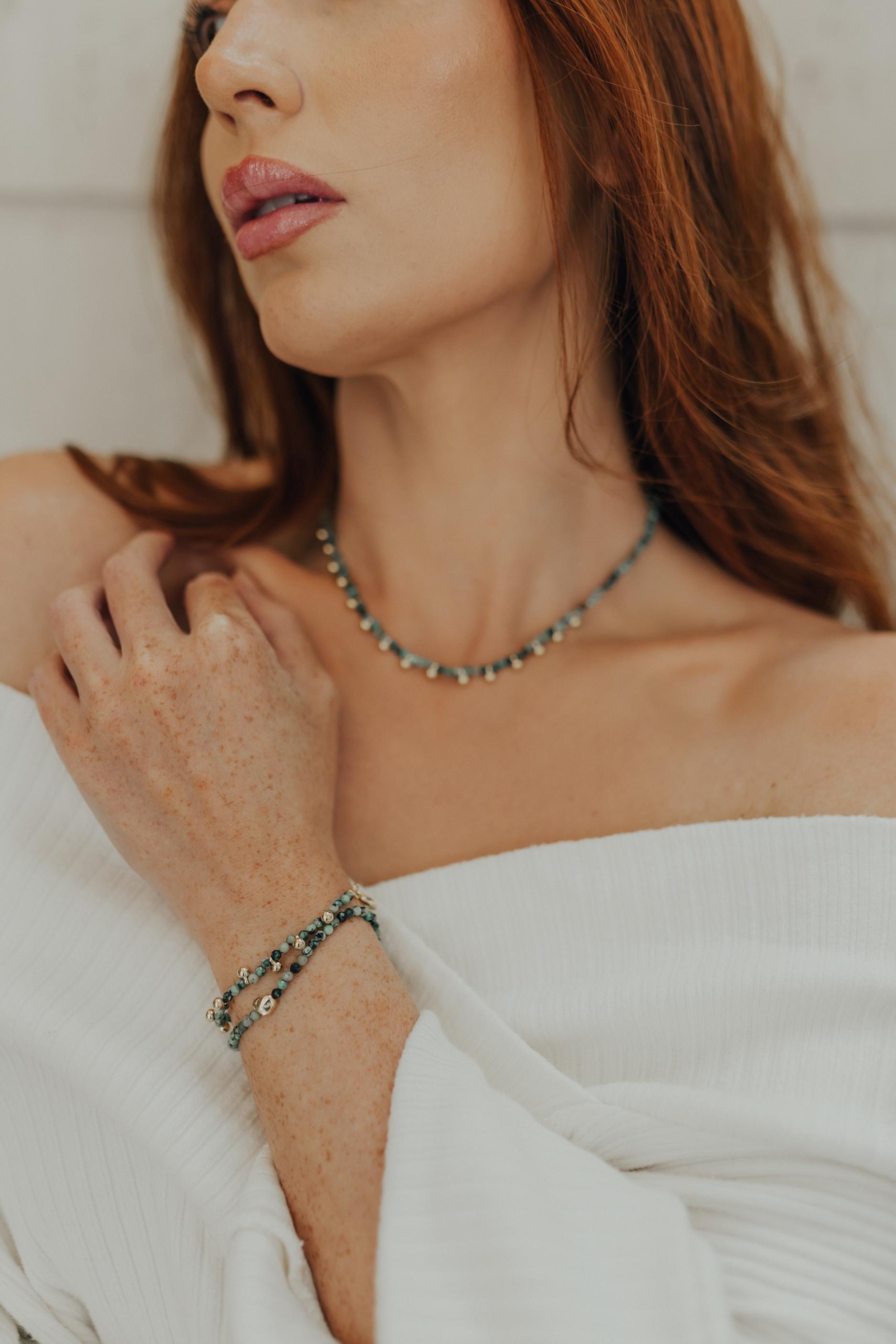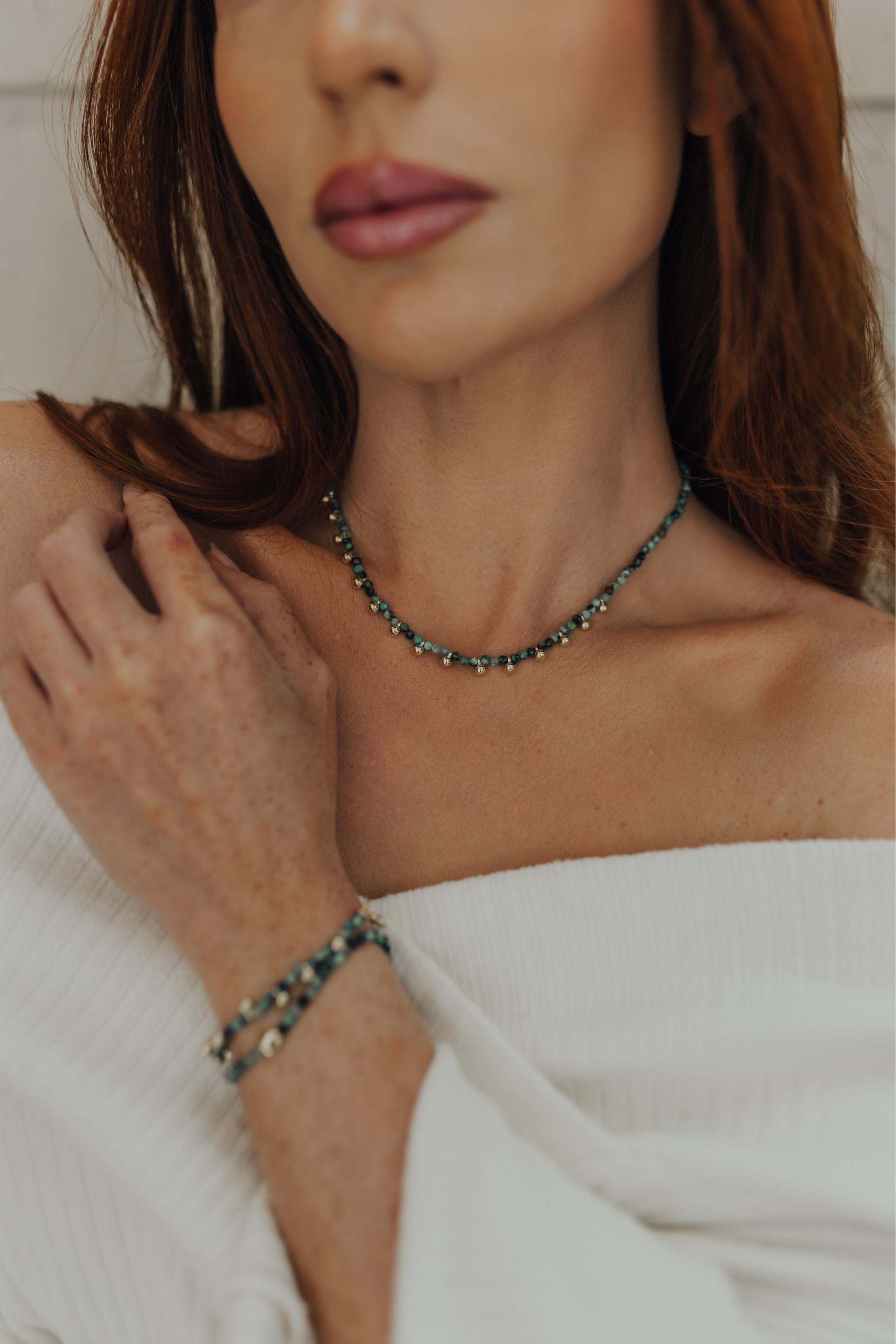 Pulseira Mini Bolinhas e Turmalina Africana Dourado
