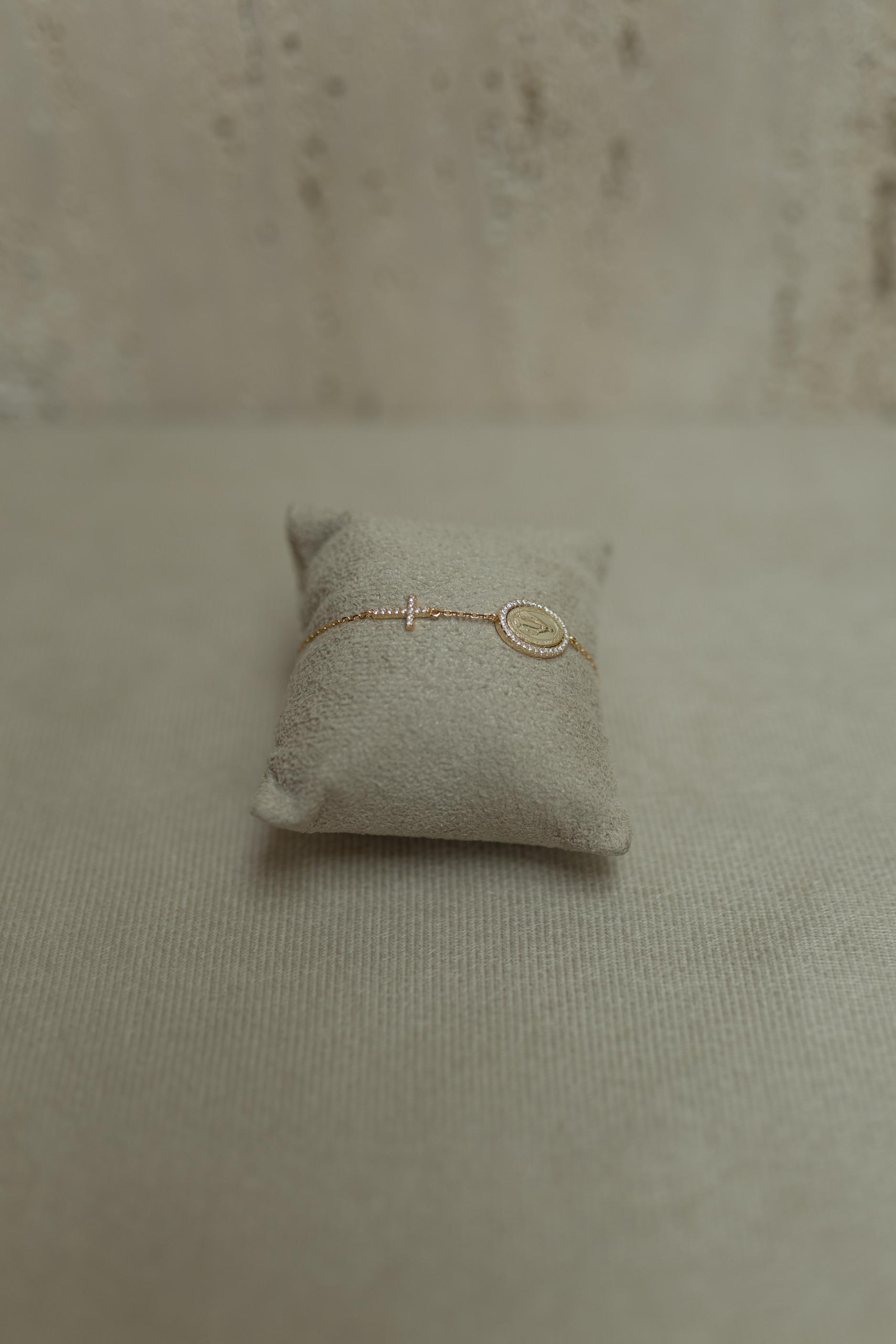 Pulseira Nossa Senhora das Graças Cruz Moissanite Prata 925 Dourado