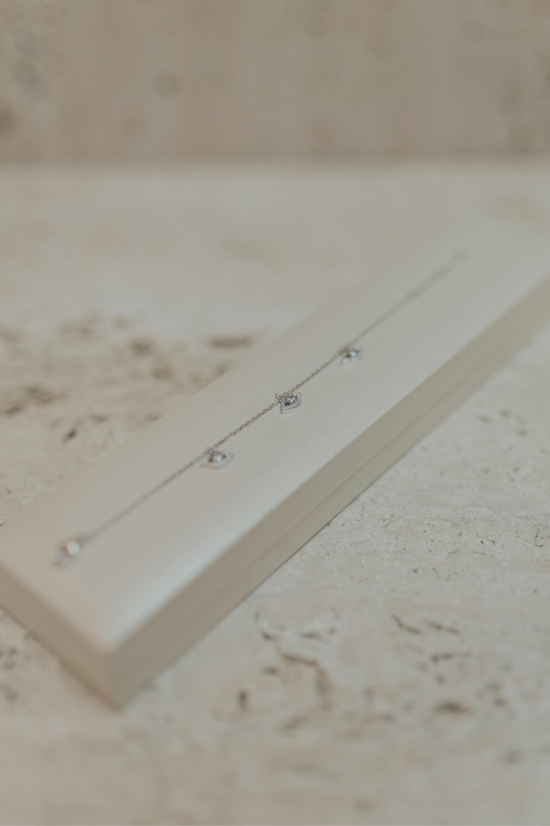 Pulseira de mini elos portugues com 3 pingentes de Olho Grego na zircônia Cristal na prata 925 e banho de ródio branco.