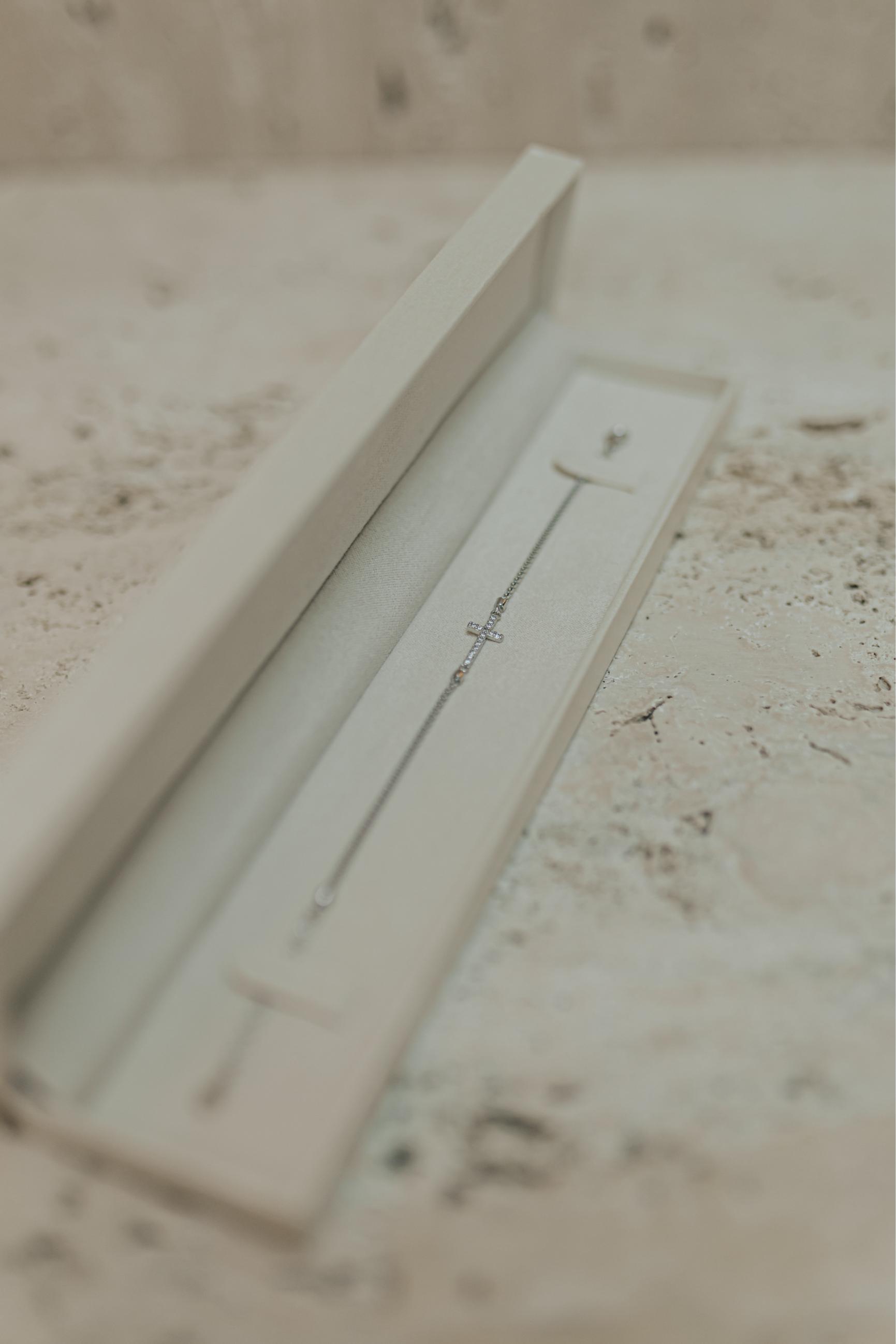 Pulseira Snake Cruz Cravejada Prata 925 Ródio Branco