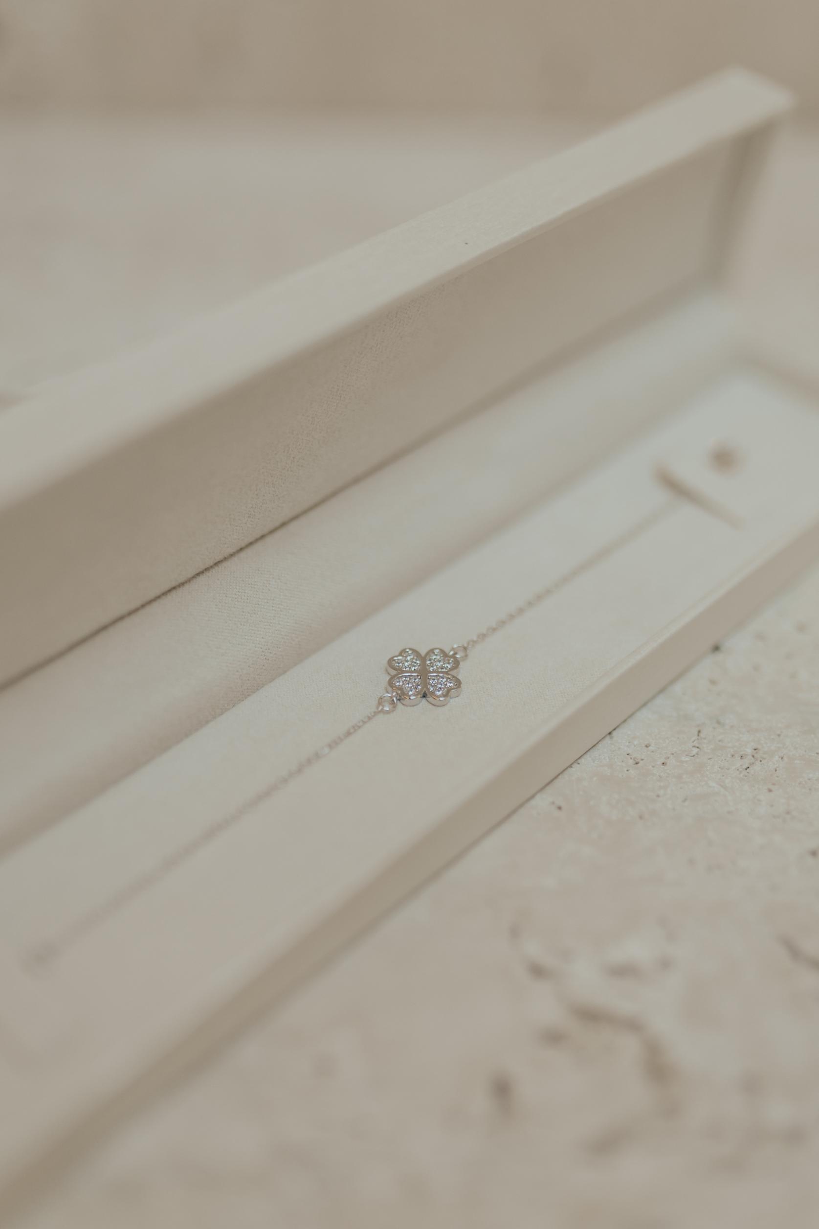 Pulseira com pingente de trevo cravejado na prata 925 e banho de ródio branco.