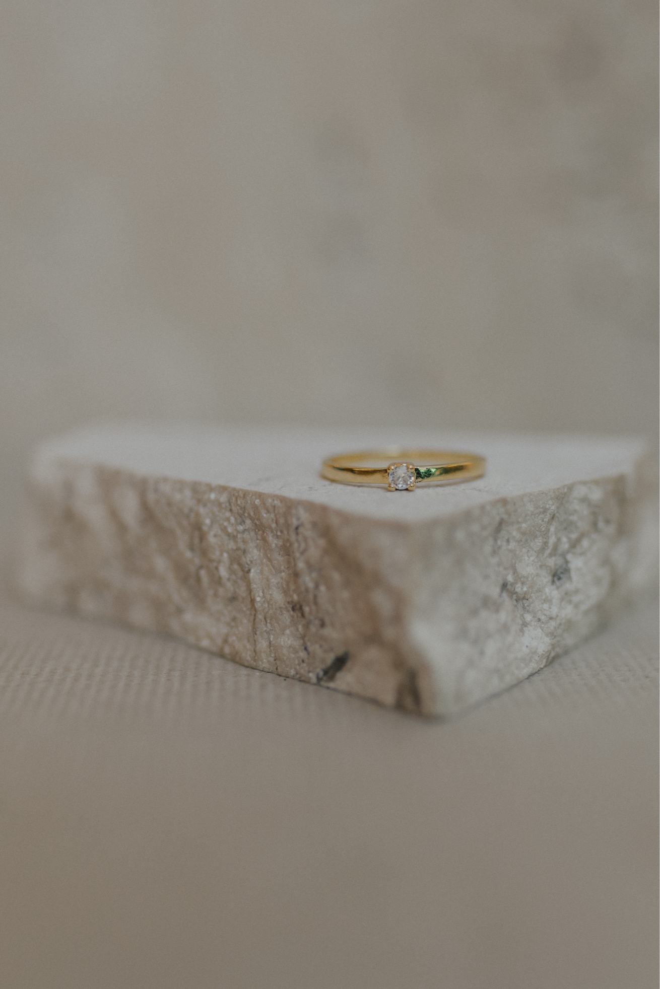 Anel solitário com pedra cristal no banho de ouro 18k.