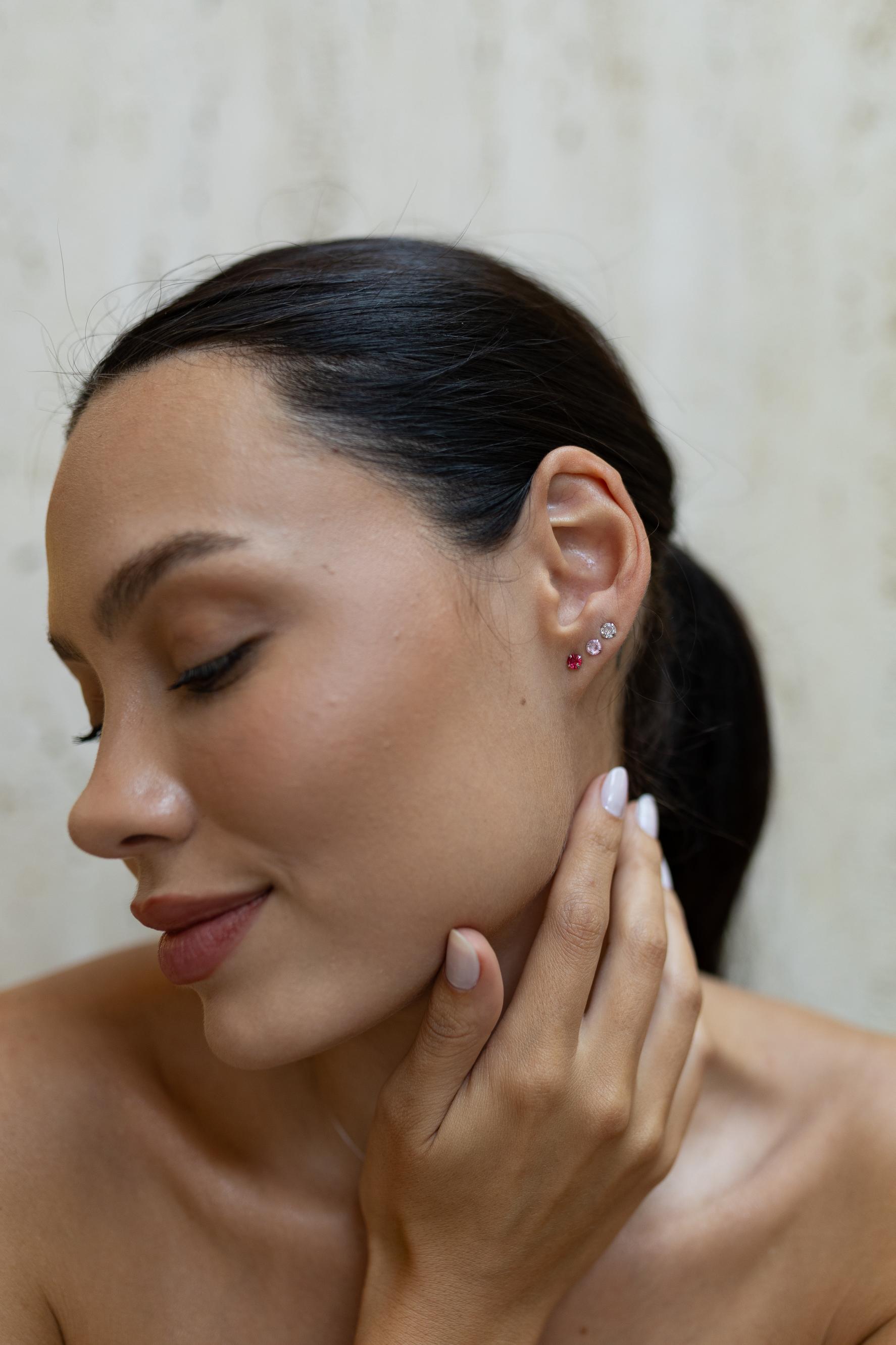 Kit com 3 brincos pontos de luz prata 925 em tons de rosa e banho de ródio branco.